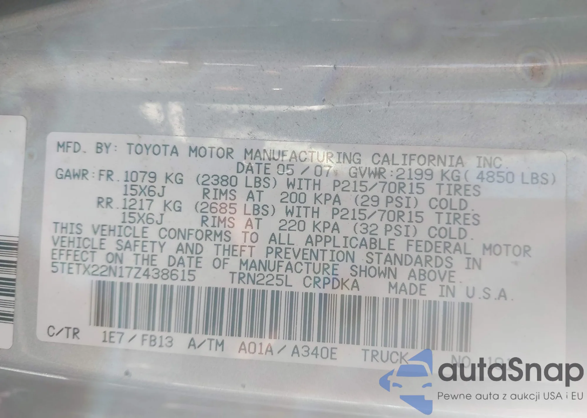 VIN: 5TETX22N17Z438615