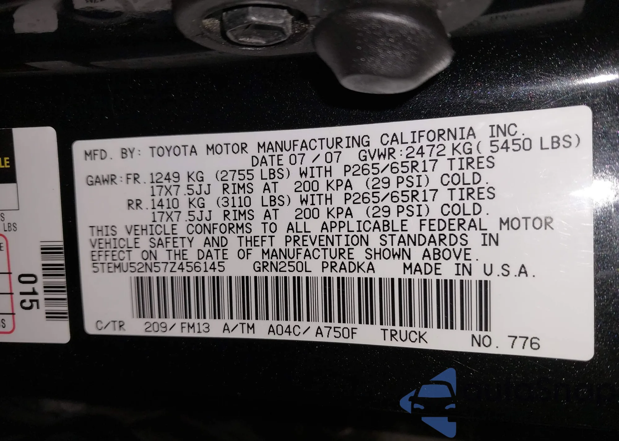 VIN: 5TEMU52N57Z456145