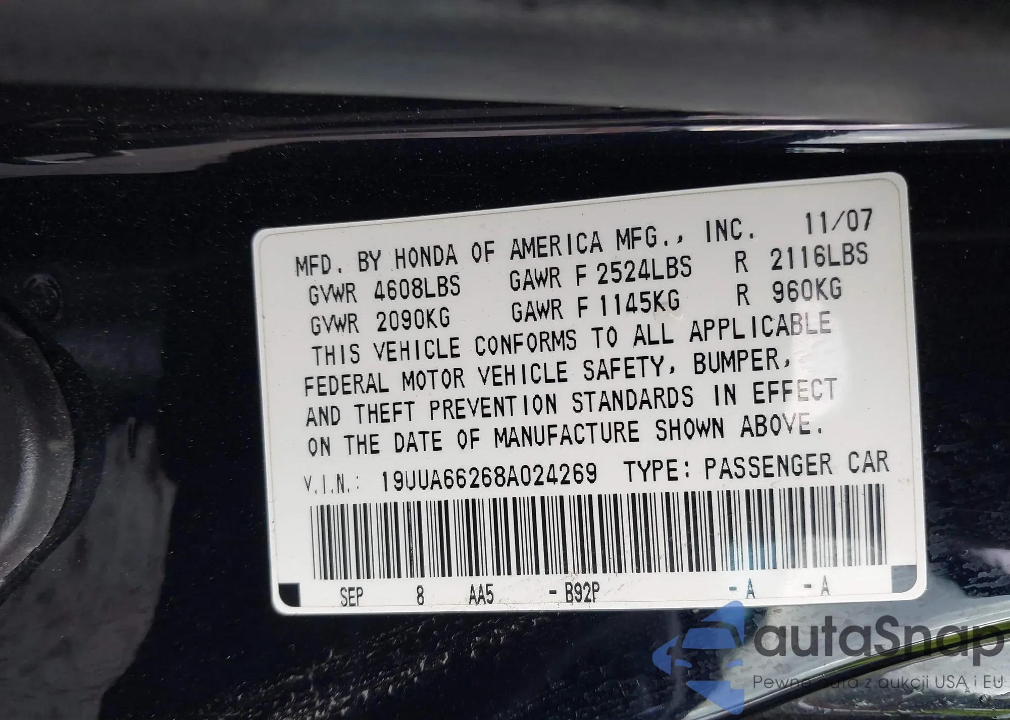 VIN: 19UUA66268A024269