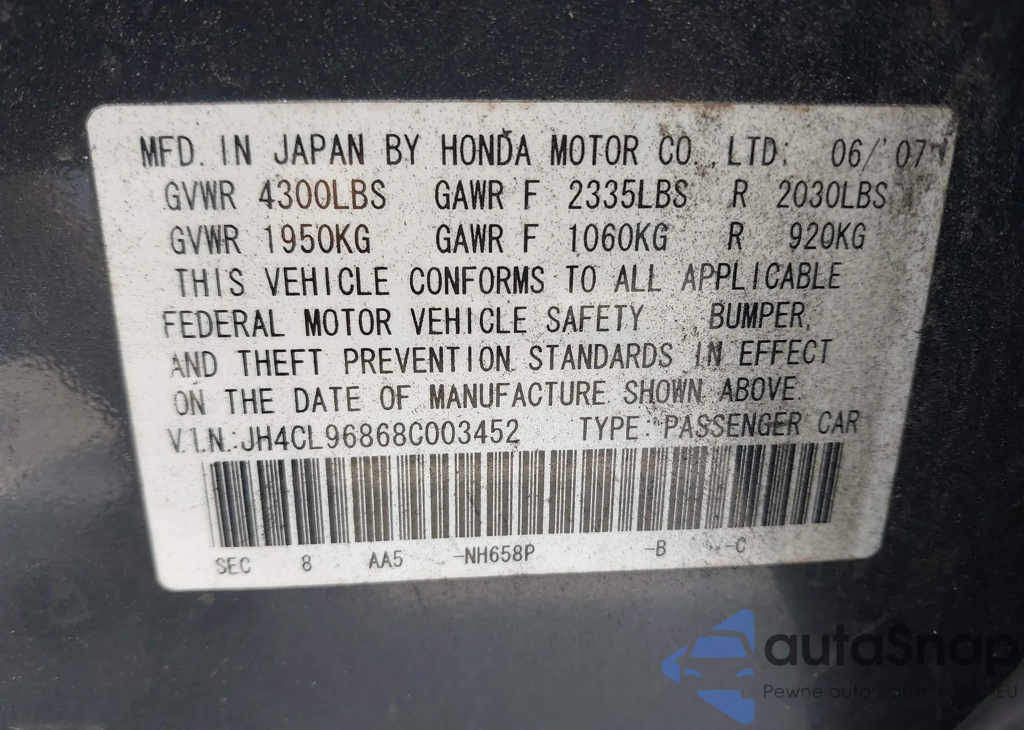 VIN: JH4CL96868C003452