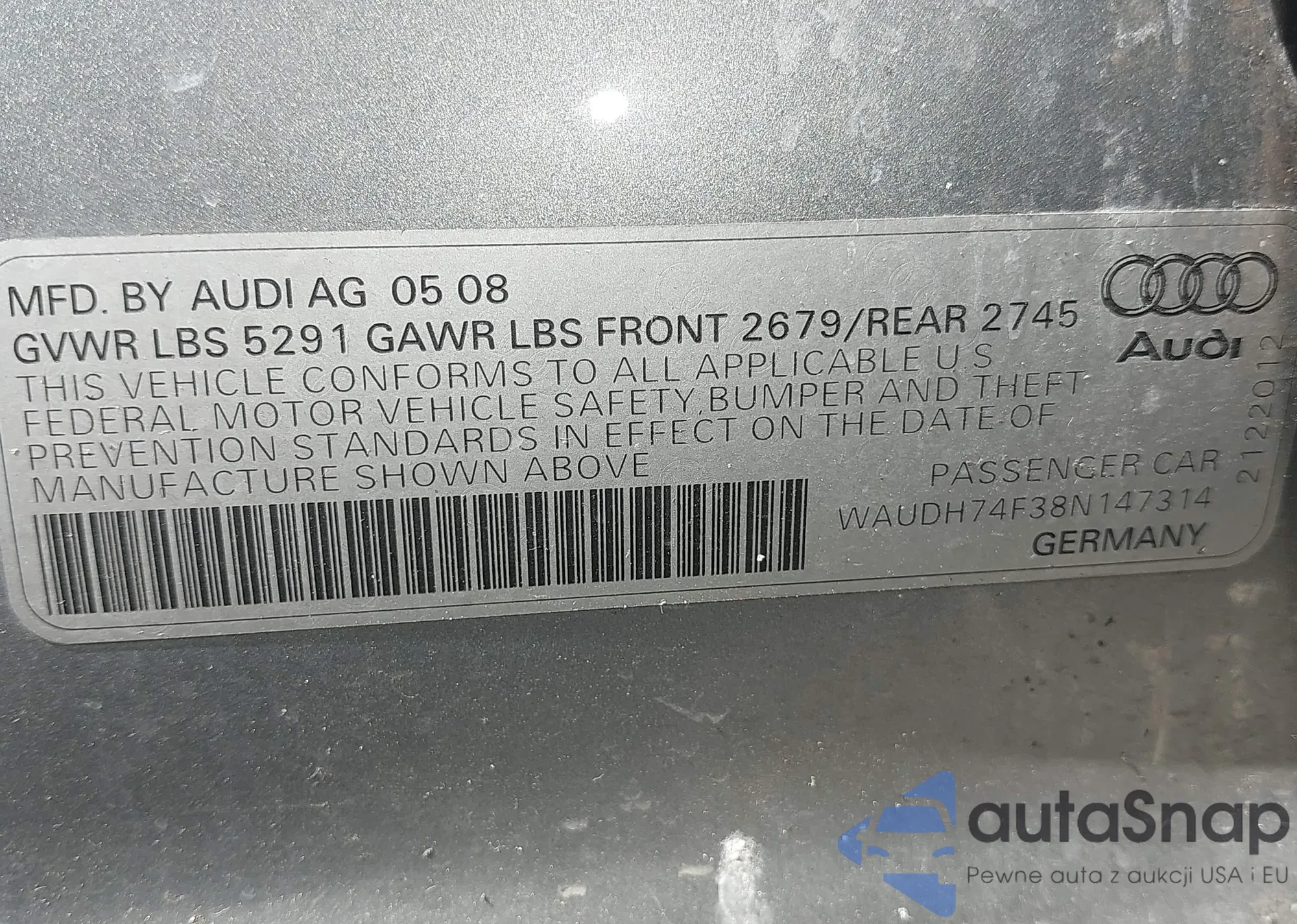 VIN: WAUDH74F38N147314