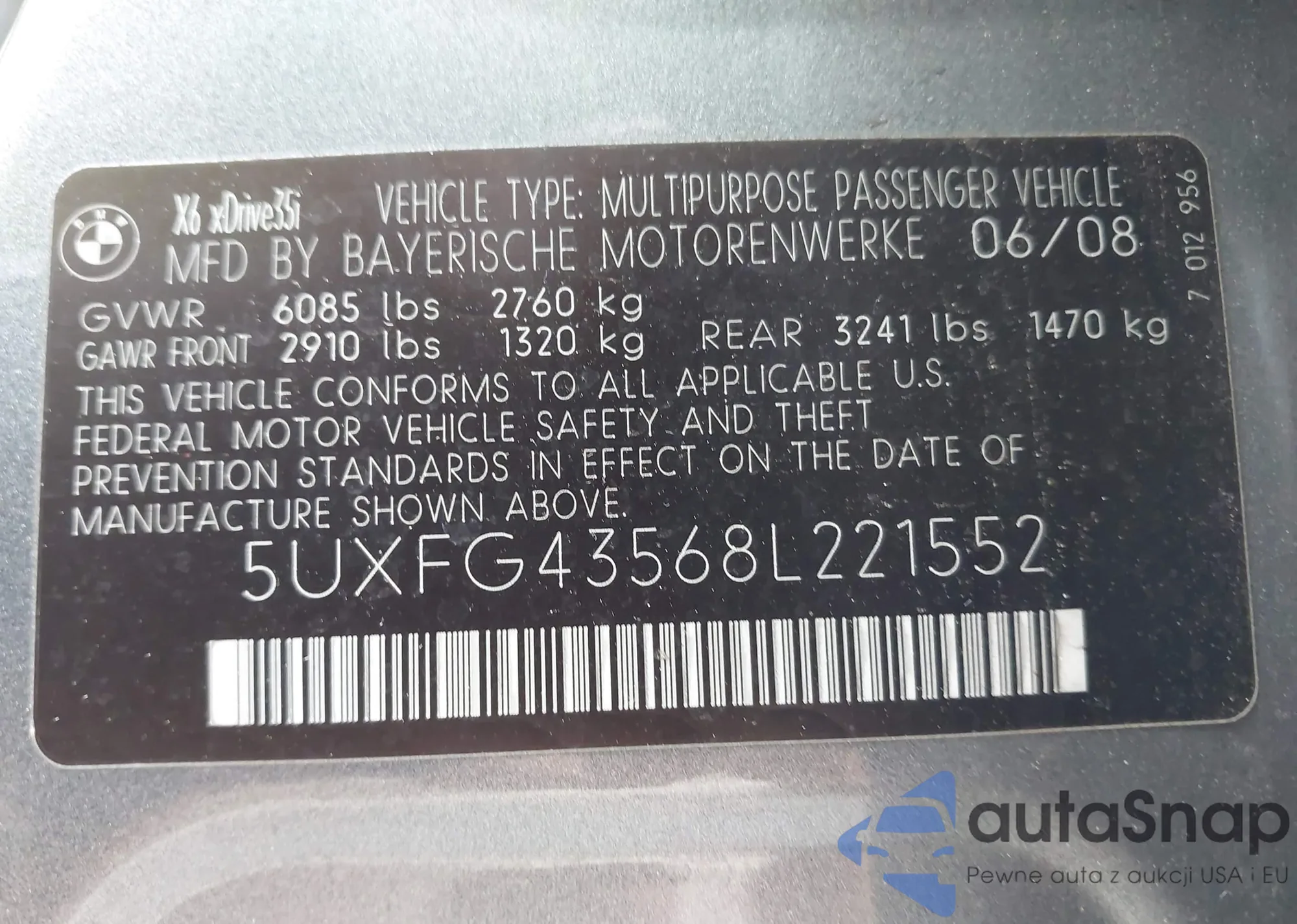 VIN: 5UXFG43568L221552