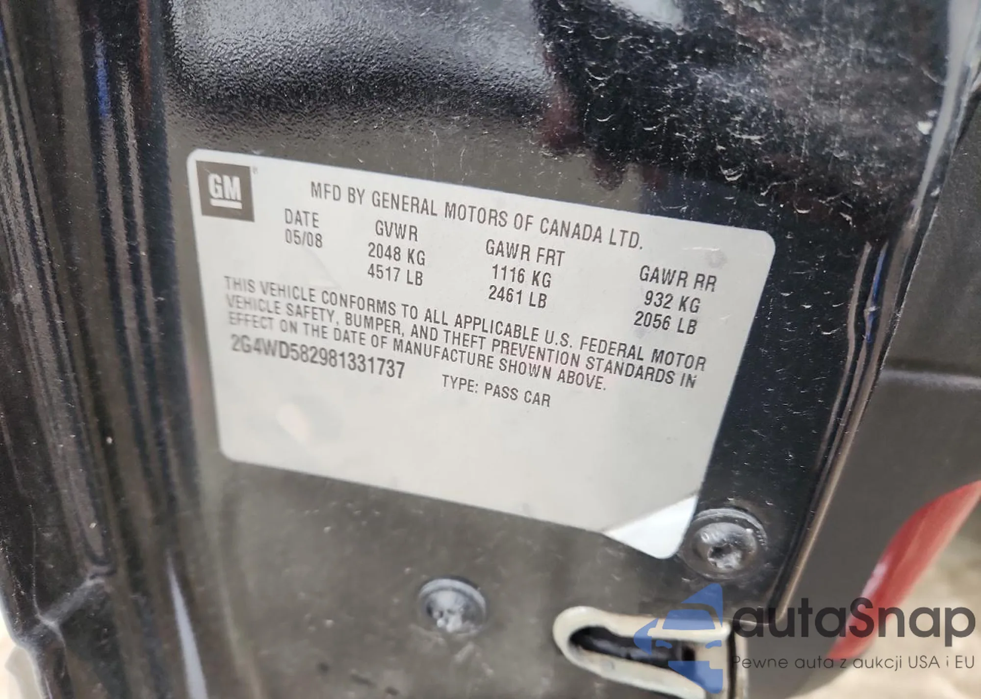 The car Buick LaCrosse 2008 (VIN 2G4WD582981331737) has documents that prevent registration. Export and registration may be difficult. Contact AutaSnap experts to find alternatives.