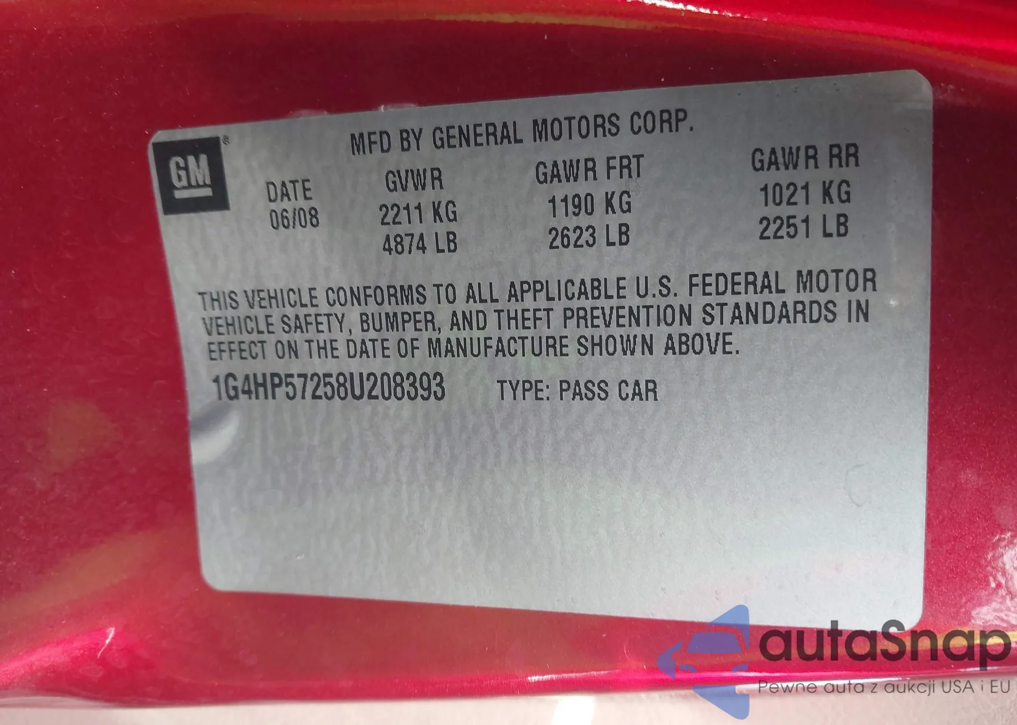 • VIN: 1G4HP57258U208393