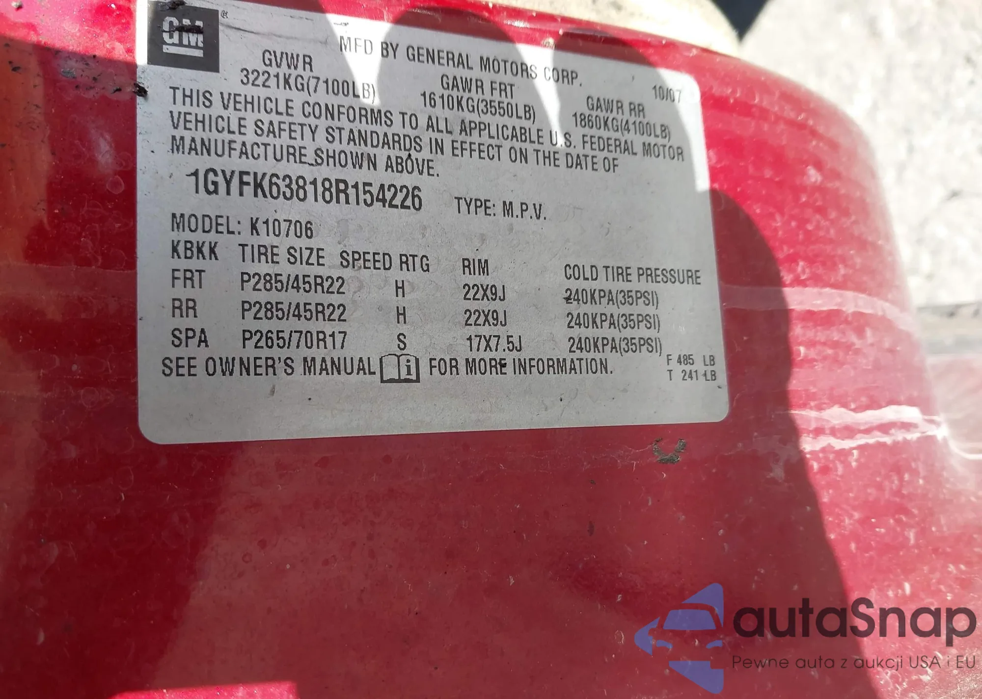 • VIN: 1GYFK63818R154226