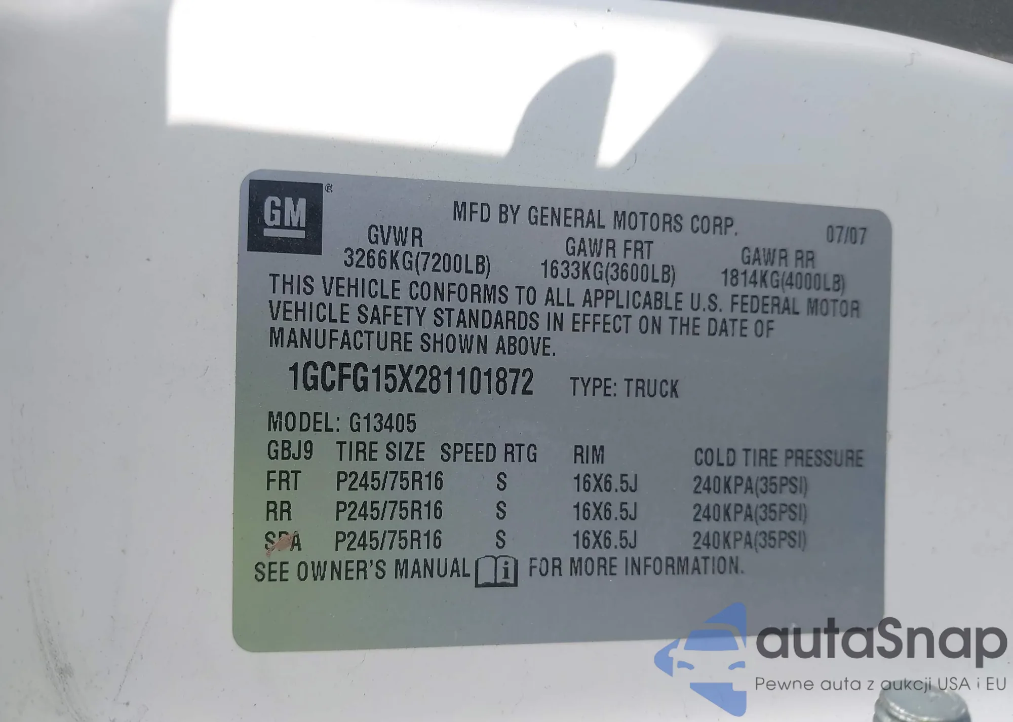 • VIN: 1GCFG15X281101872
