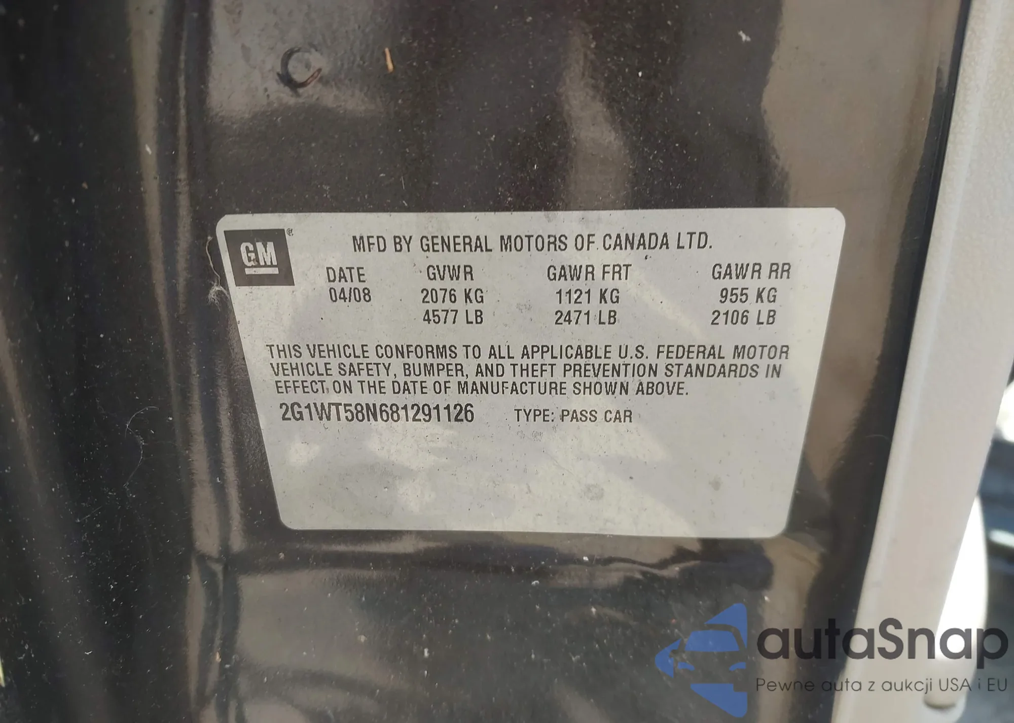 VIN: 2G1WT58N681291126
