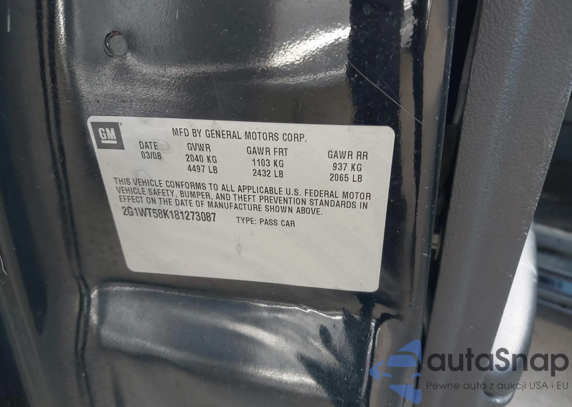 VIN: 2G1WT58K181273087