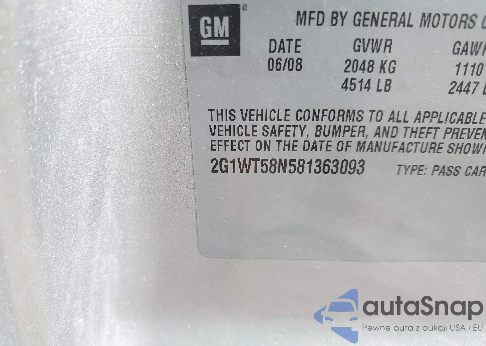 VIN: 2G1WT58N581363093