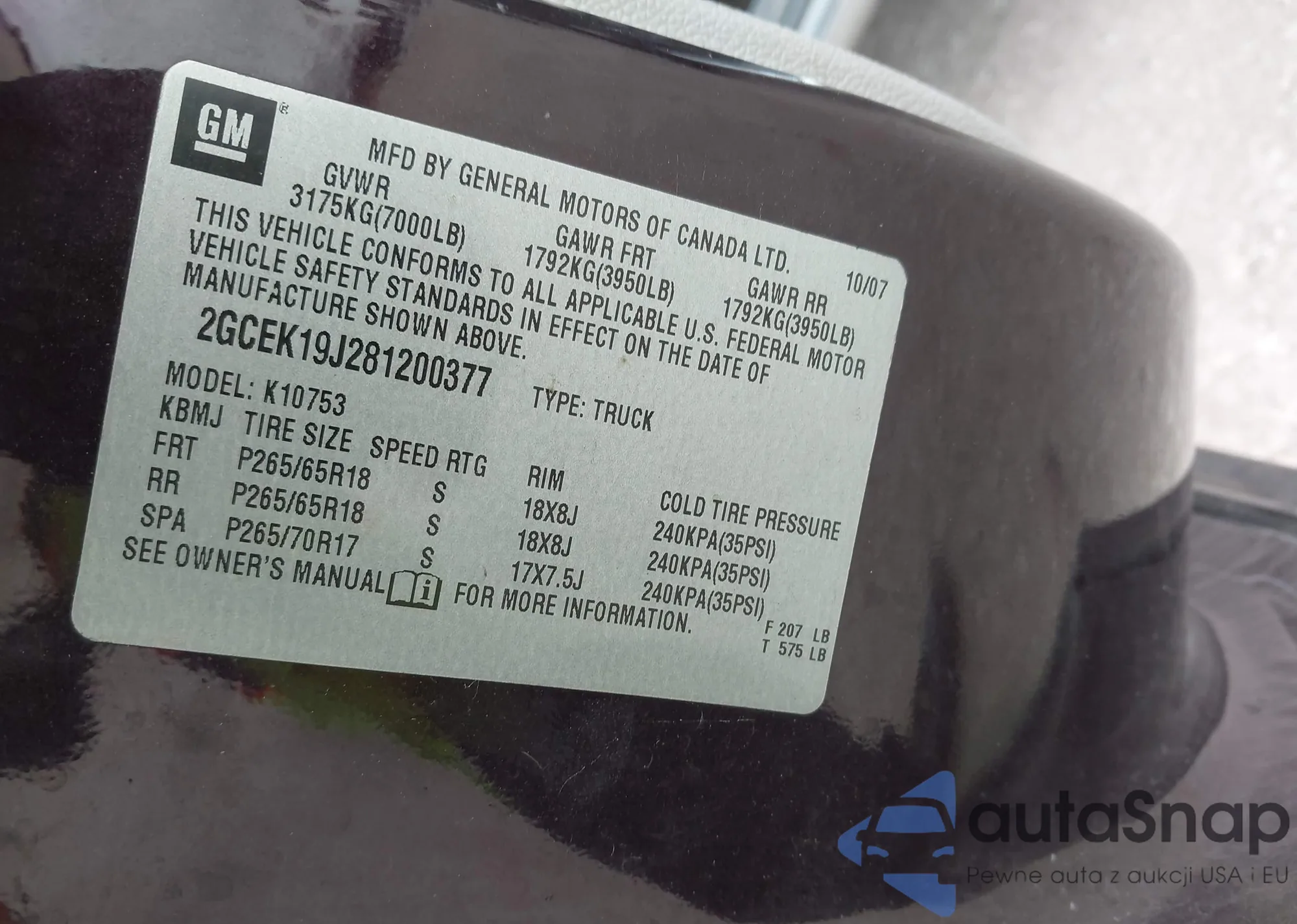 • VIN: 2GCEK19J281200377