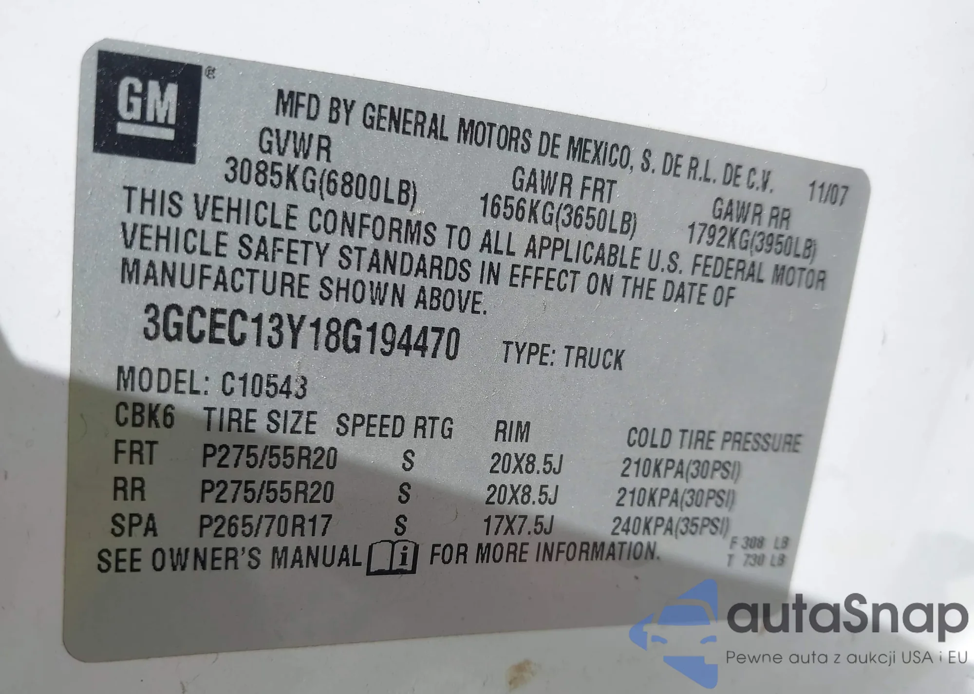 VIN: 3GCEC13Y18G194470
