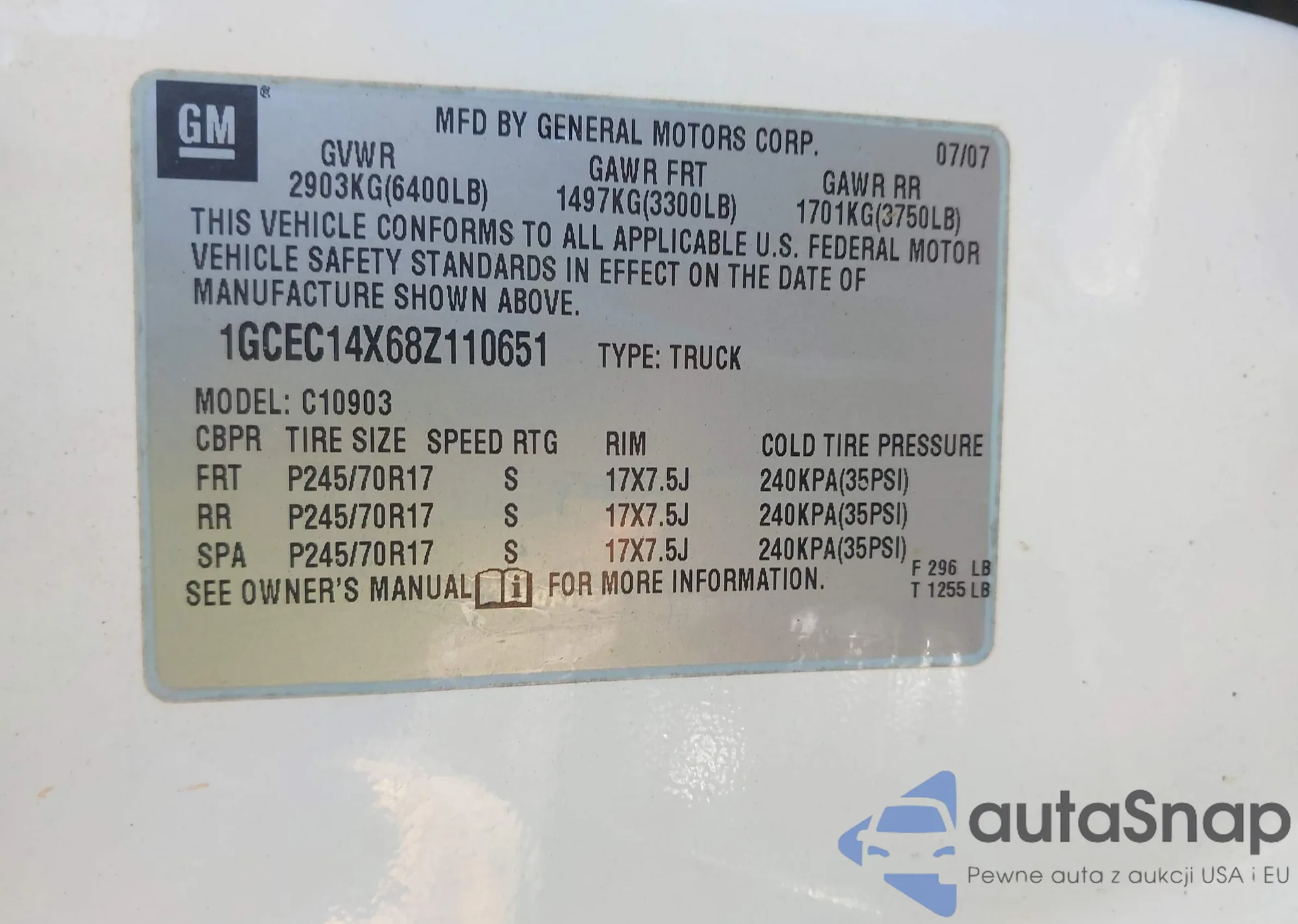 VIN: 1GCEC14X68Z110651