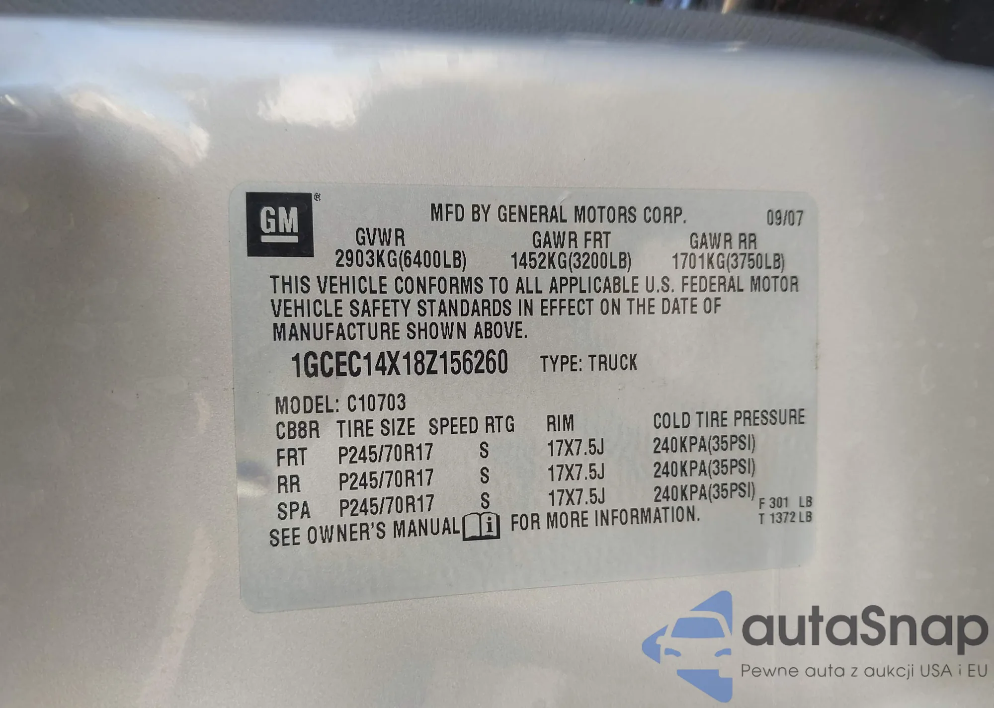 The car Chevrolet Silverado 2008 (VIN 1GCEC14X18Z156260) has not been auctioned before. The documents are clean, and the mileage matches or is below the market average. Sold by an insurance company – we recommend purchase. Delivery to the port will take approx. 6–8 weeks.