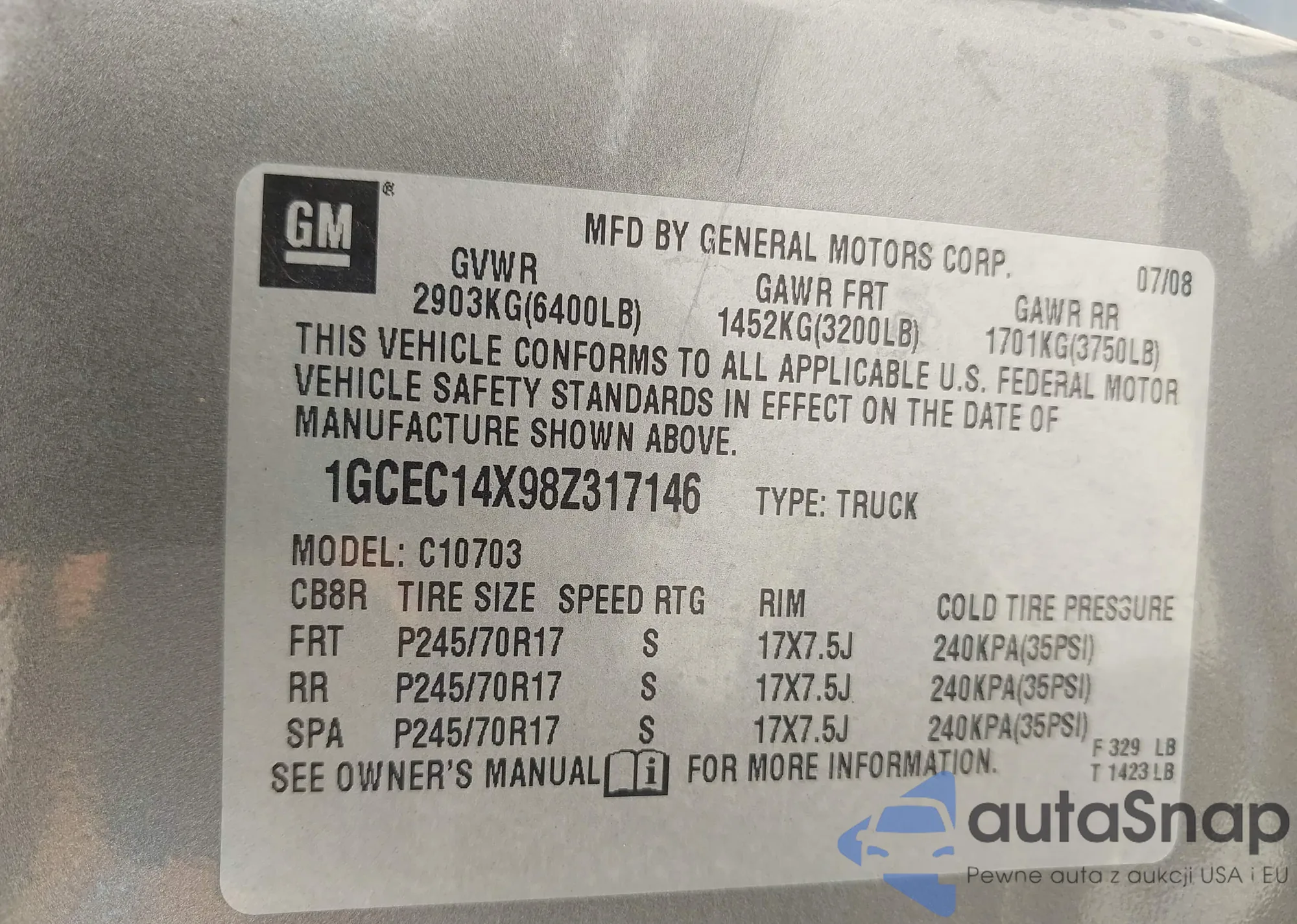 VIN: 1GCEC14X98Z317146
