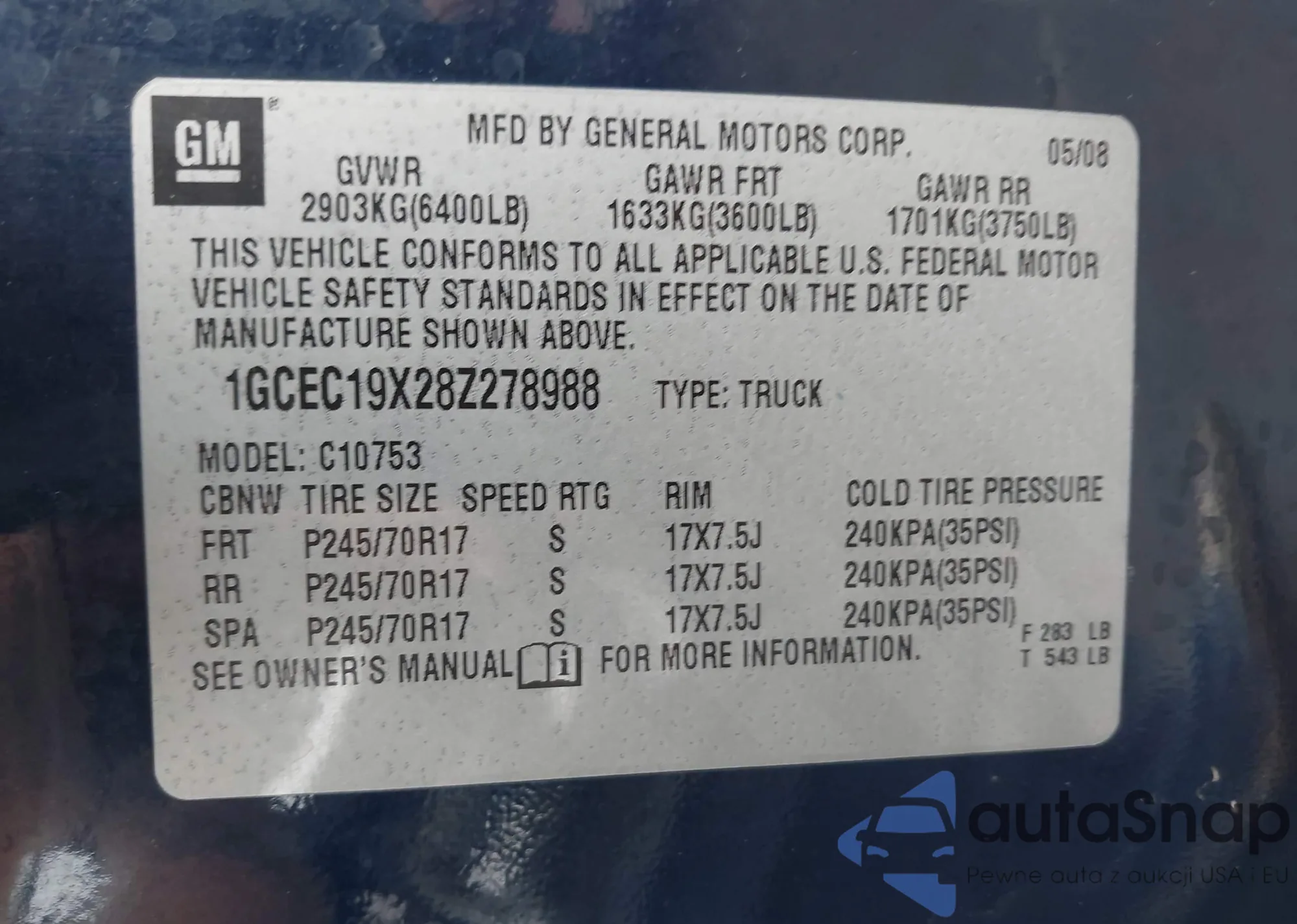 VIN: 1GCEC19X28Z278988