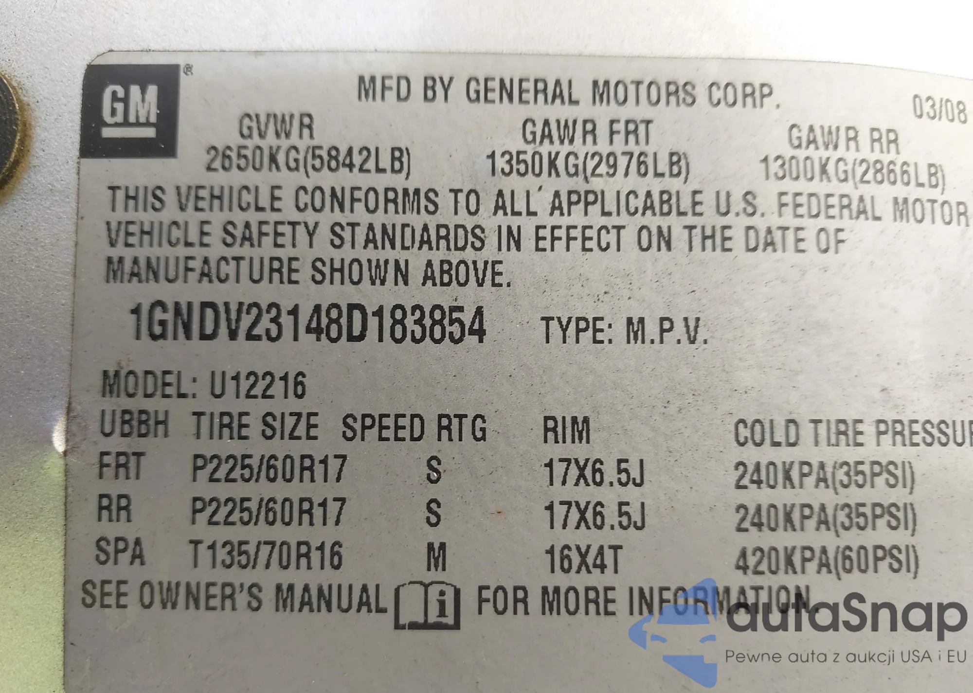 VIN: 1GNDV23148D183854