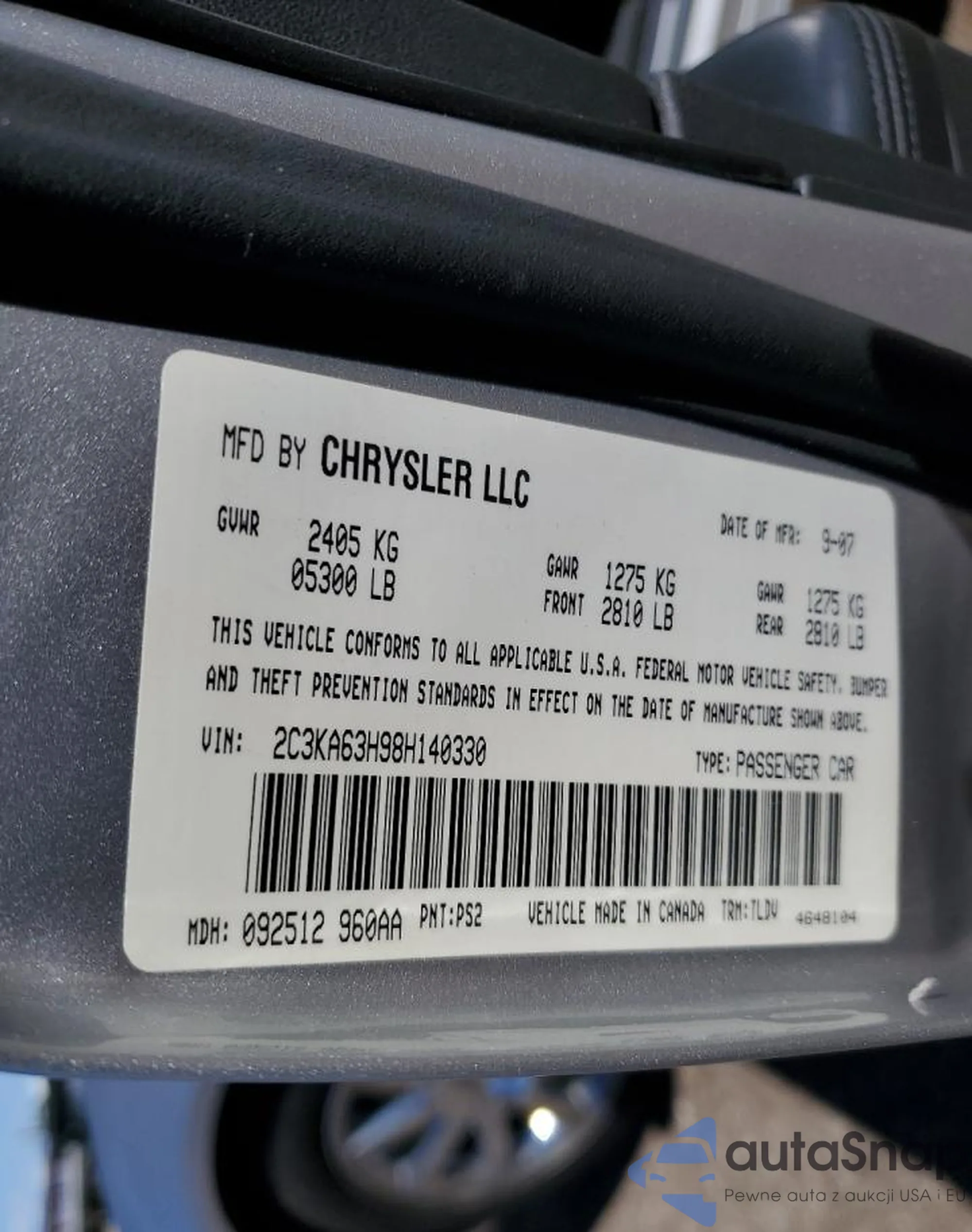 The car Chrysler 300C 2008 (VIN 2C3KA63H98H140330) is sold by an unverified seller. We recommend checking the Carfax report and confirming registration possibilities before purchase.