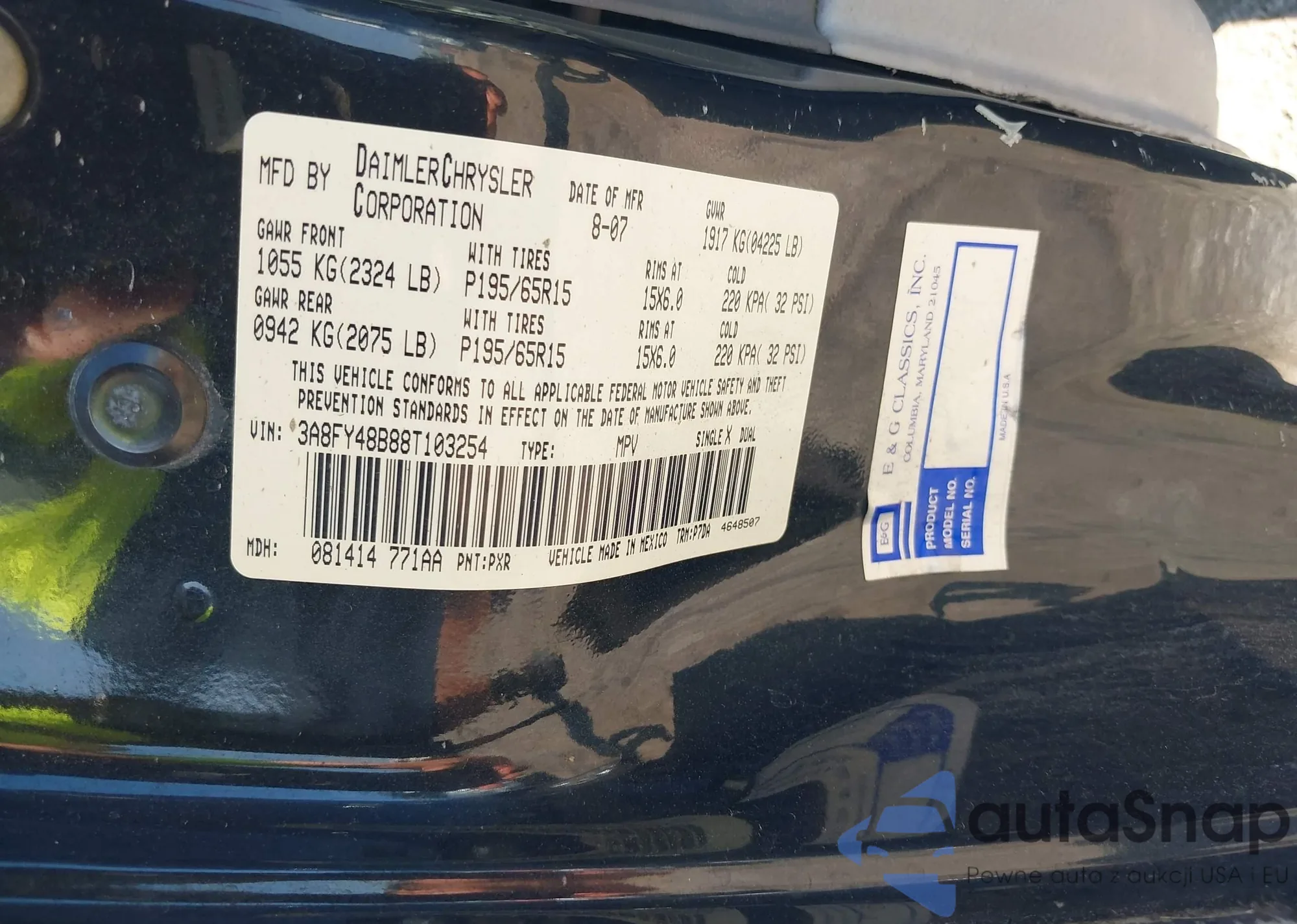 VIN: 3A8FY48B88T103254