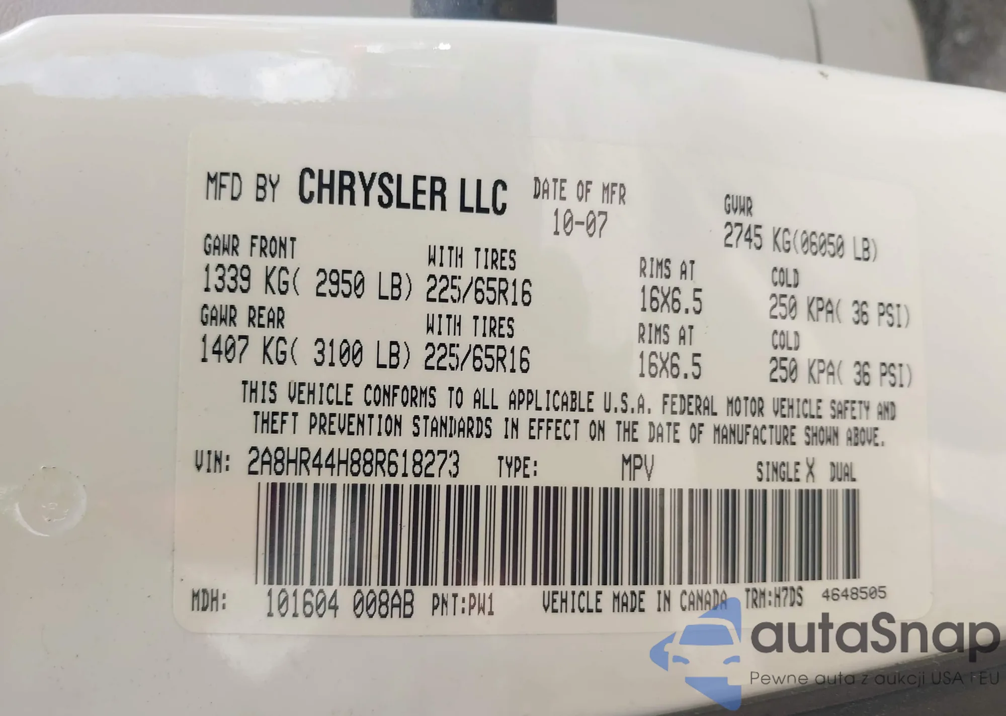 VIN: 2A8HR44H88R618273