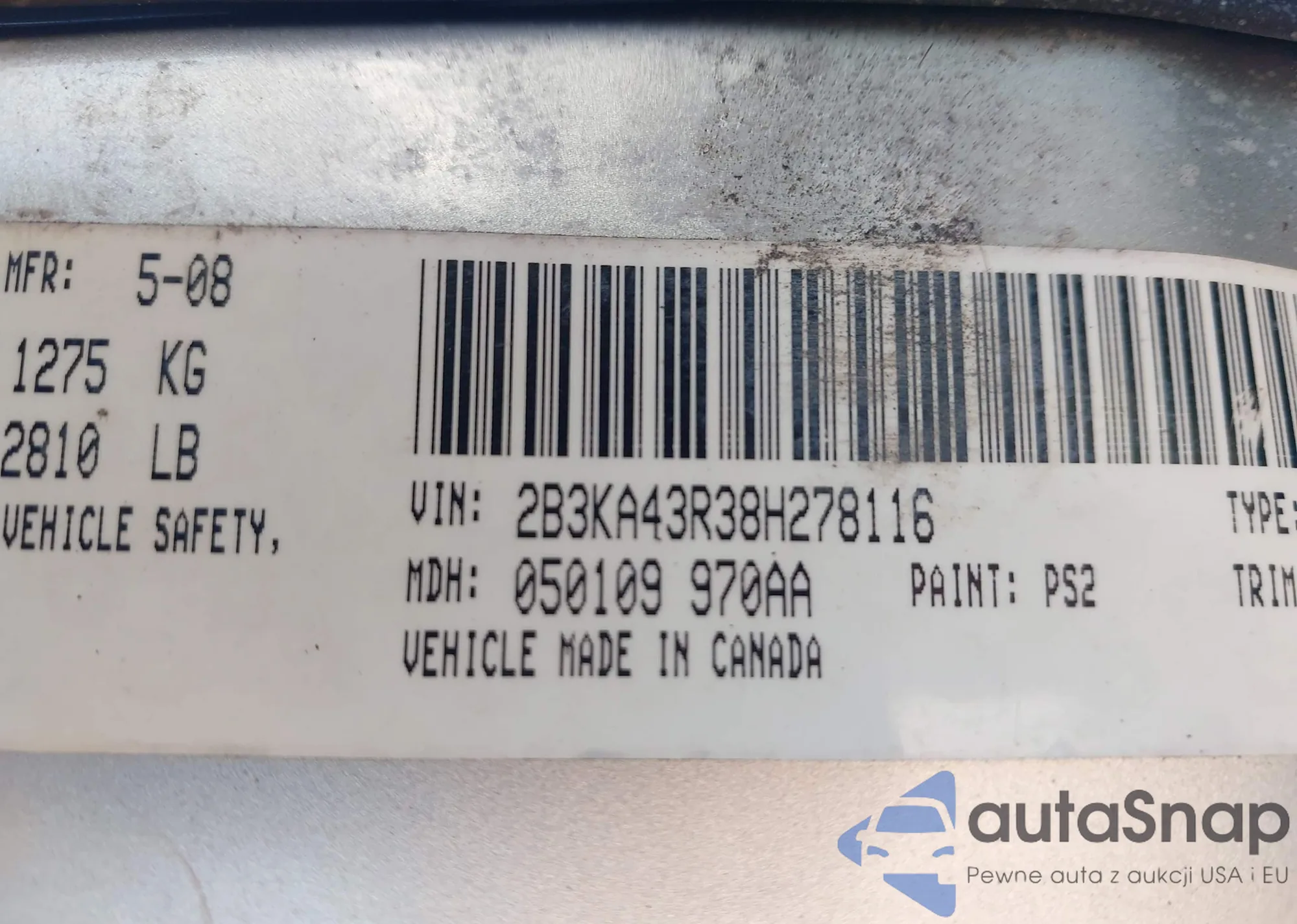 • VIN: 2B3KA43R38H278116