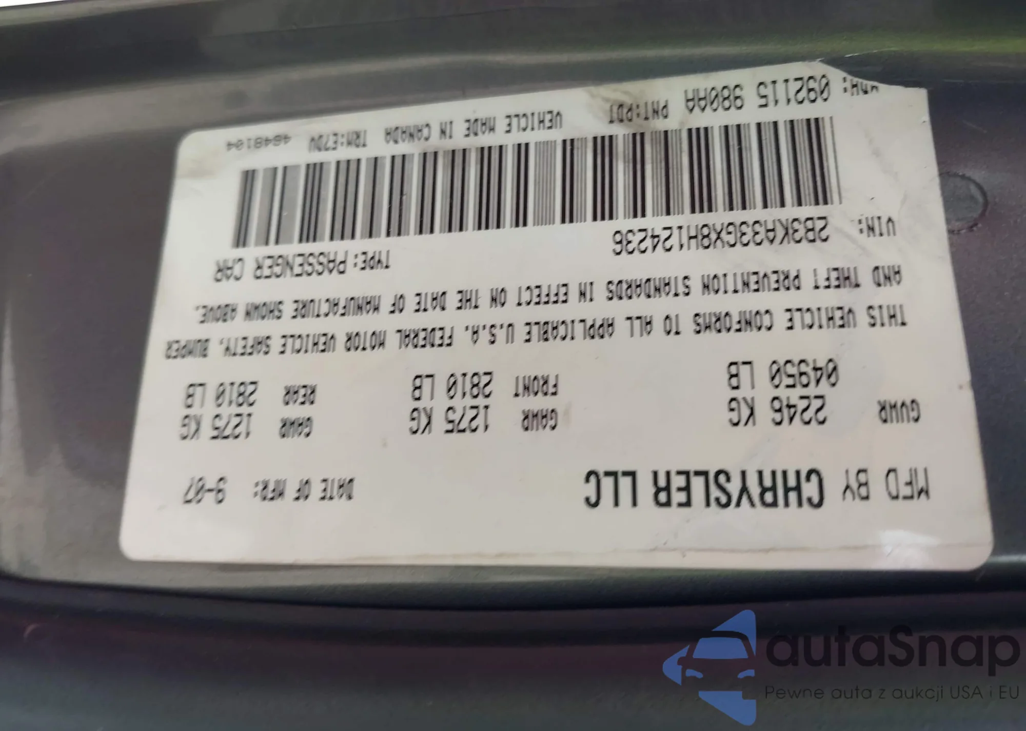 VIN: 2B3KA33GX8H124236
