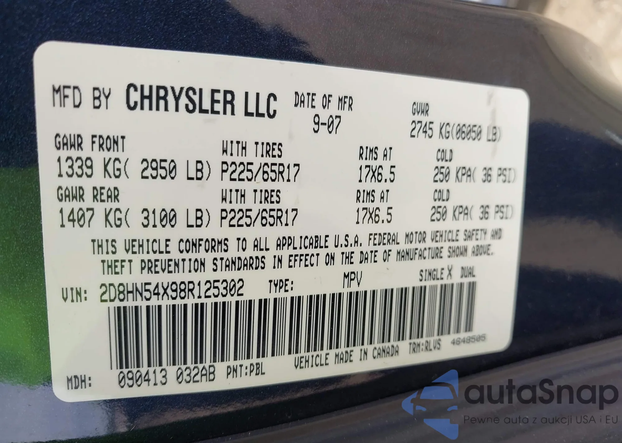 VIN: 2D8HN54X98R125302