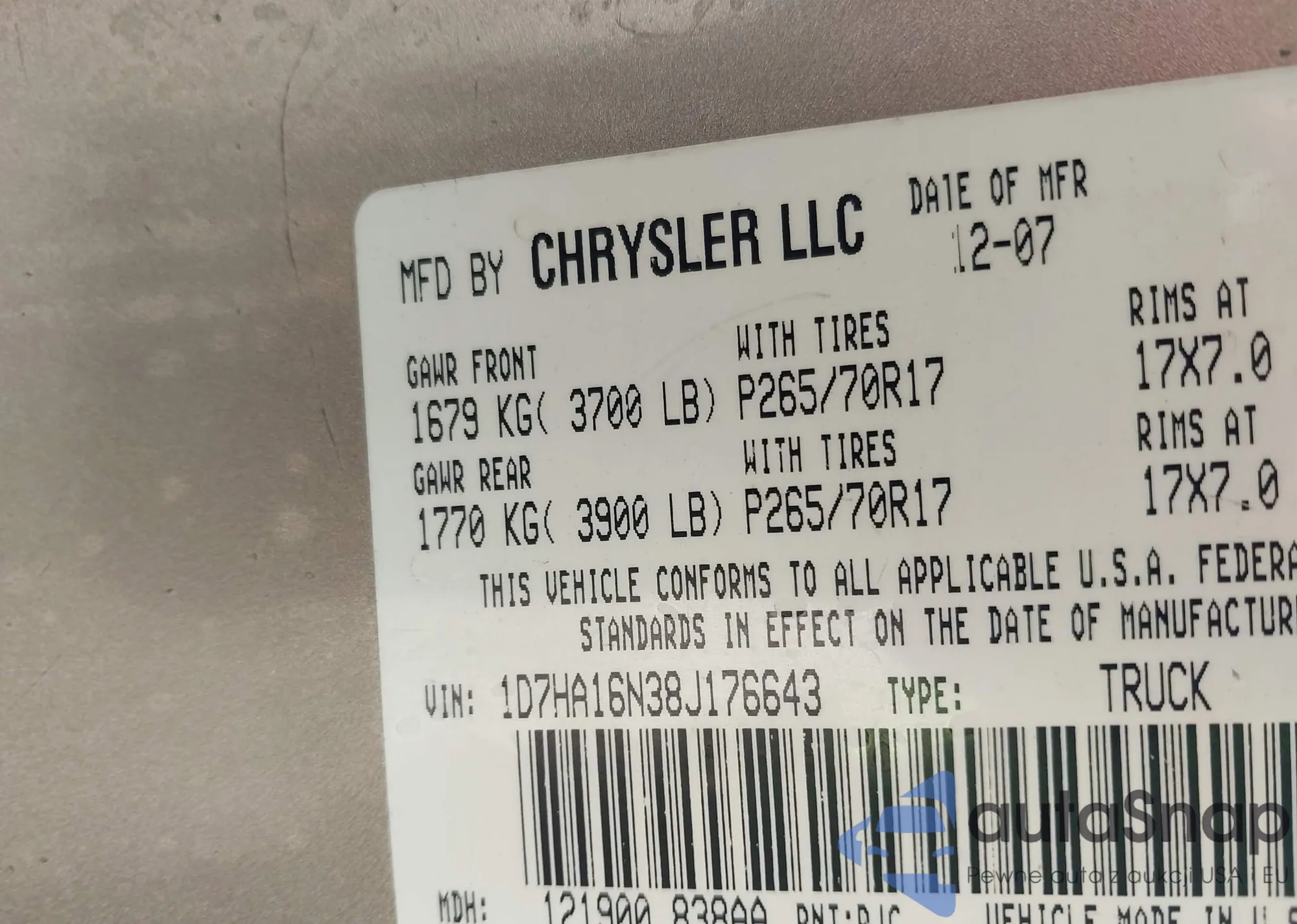 VIN: 1D7HA16N38J176643