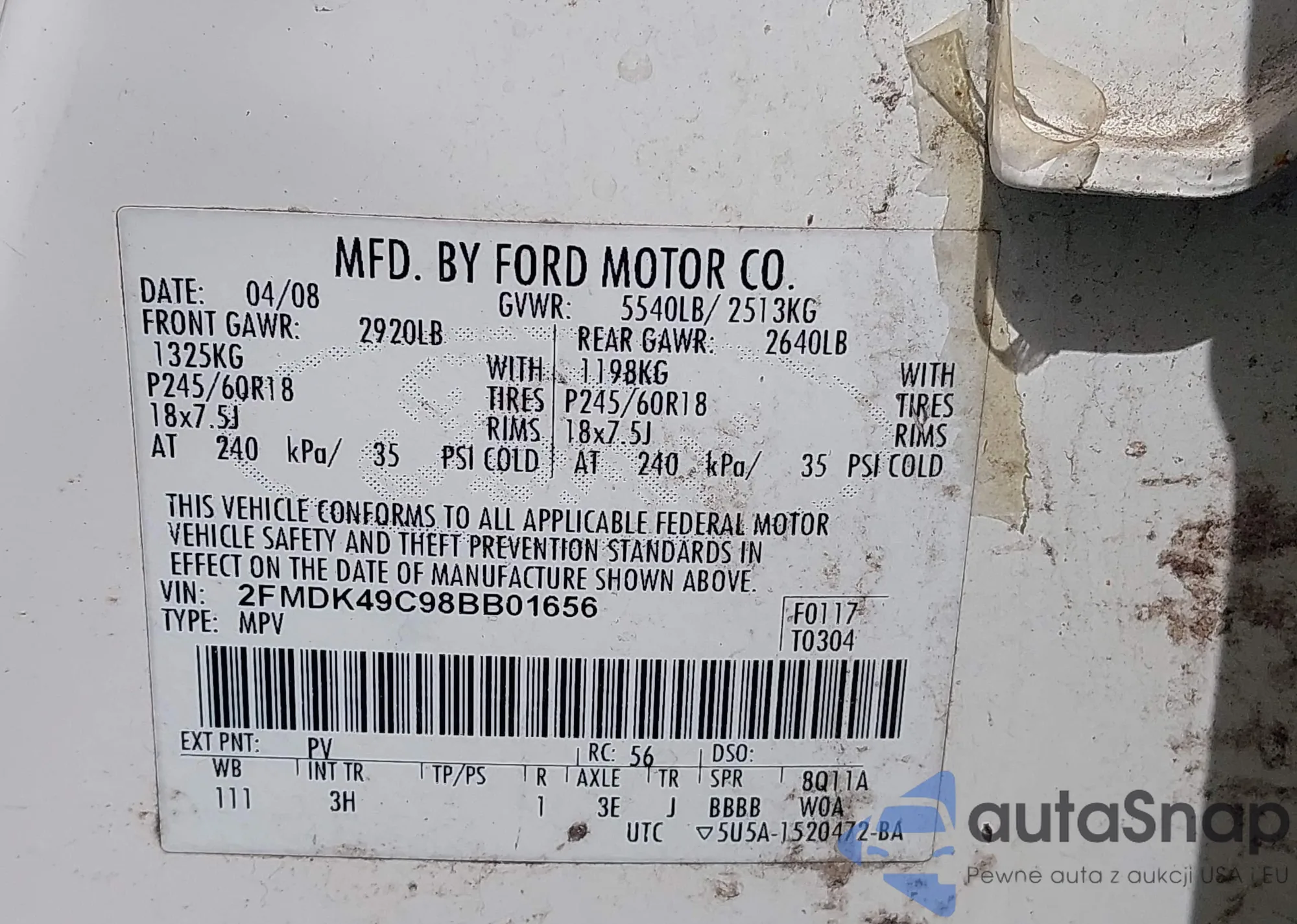 VIN: 2FMDK49C98BB01656