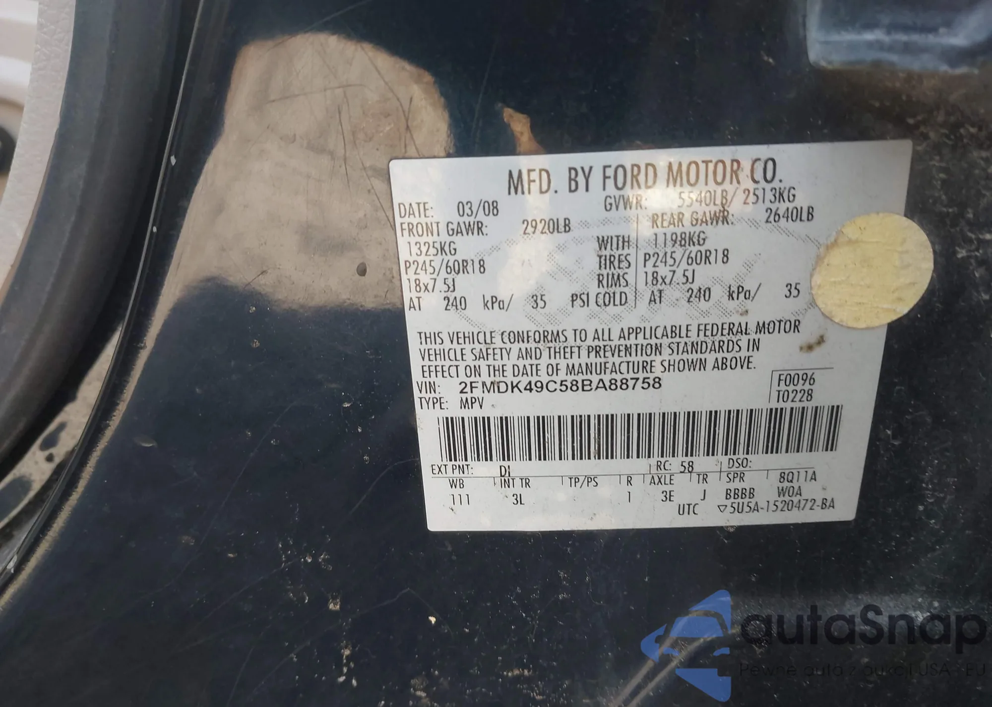 VIN: 2FMDK49C58BA88758