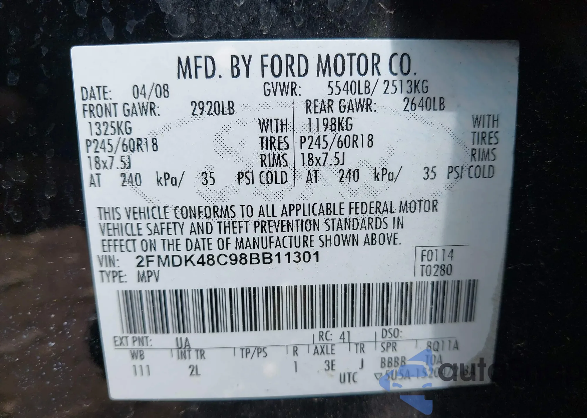 VIN: 2FMDK48C98BB11301