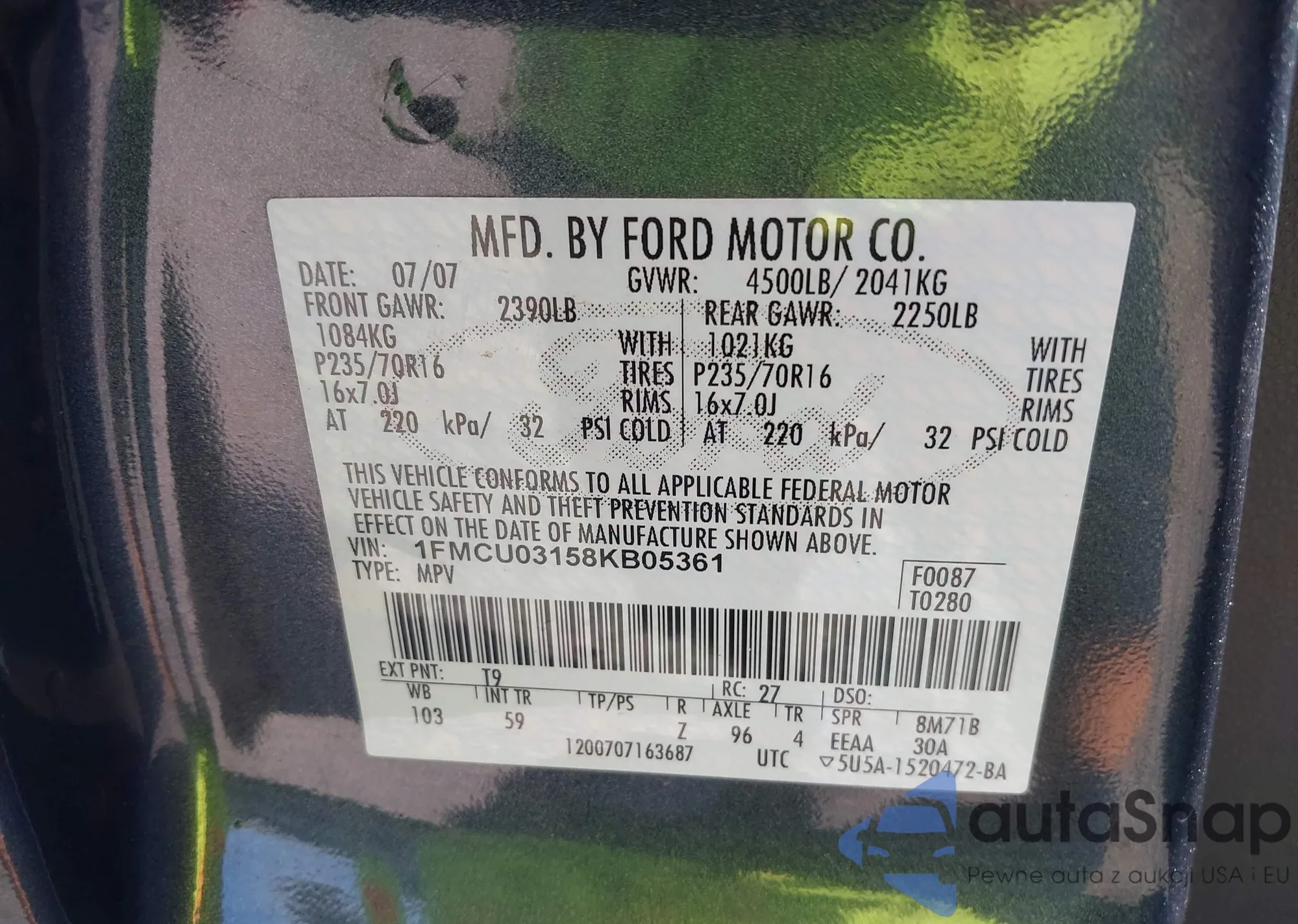 VIN: 1FMCU03158KB05361