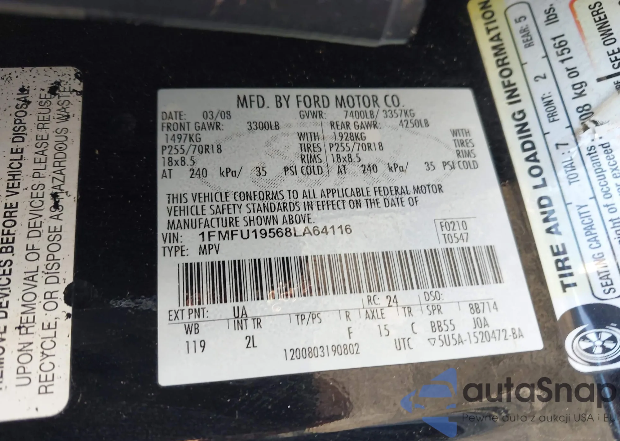 VIN: 1FMFU19568LA64116