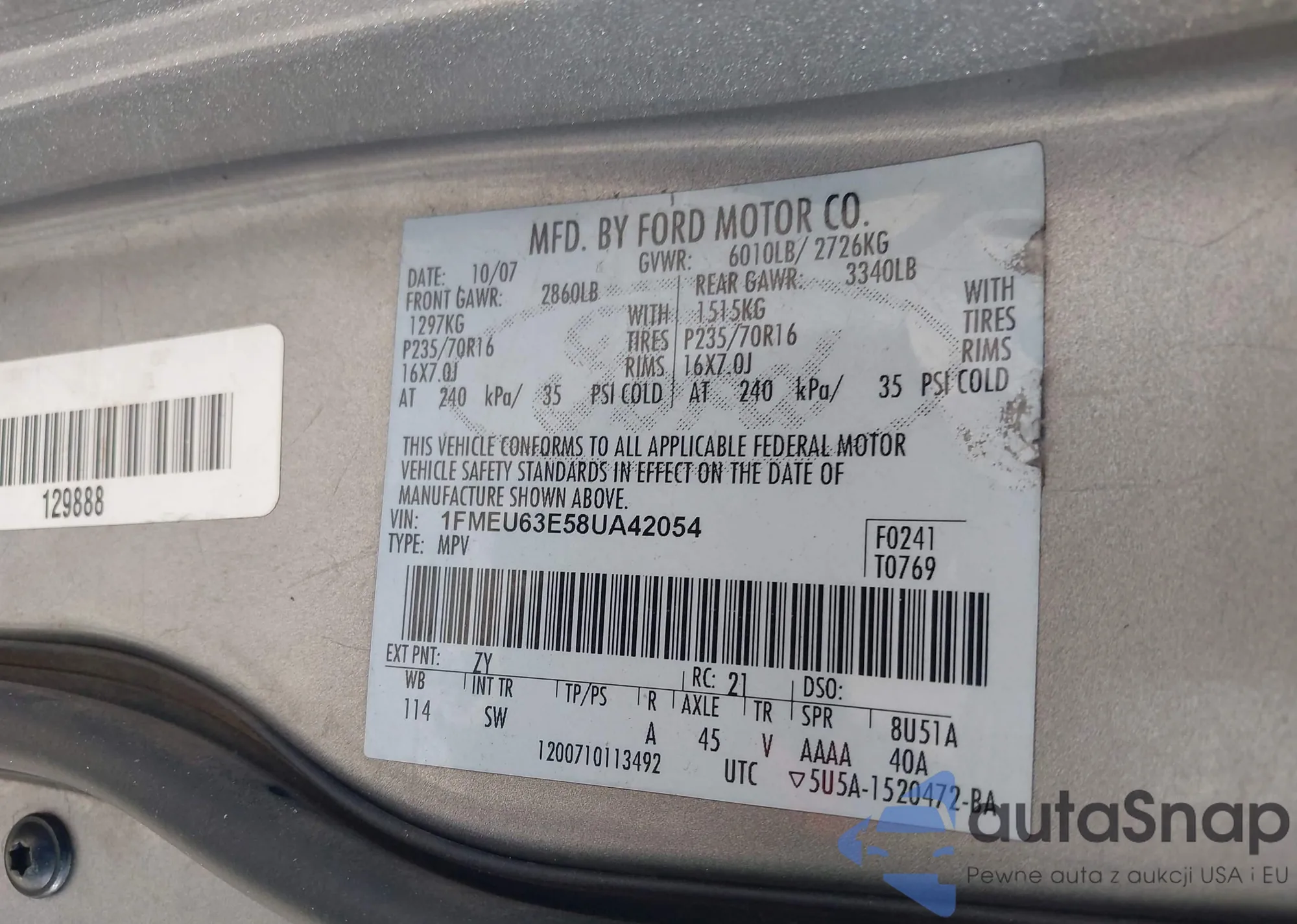 VIN: 1FMEU63E58UA42054