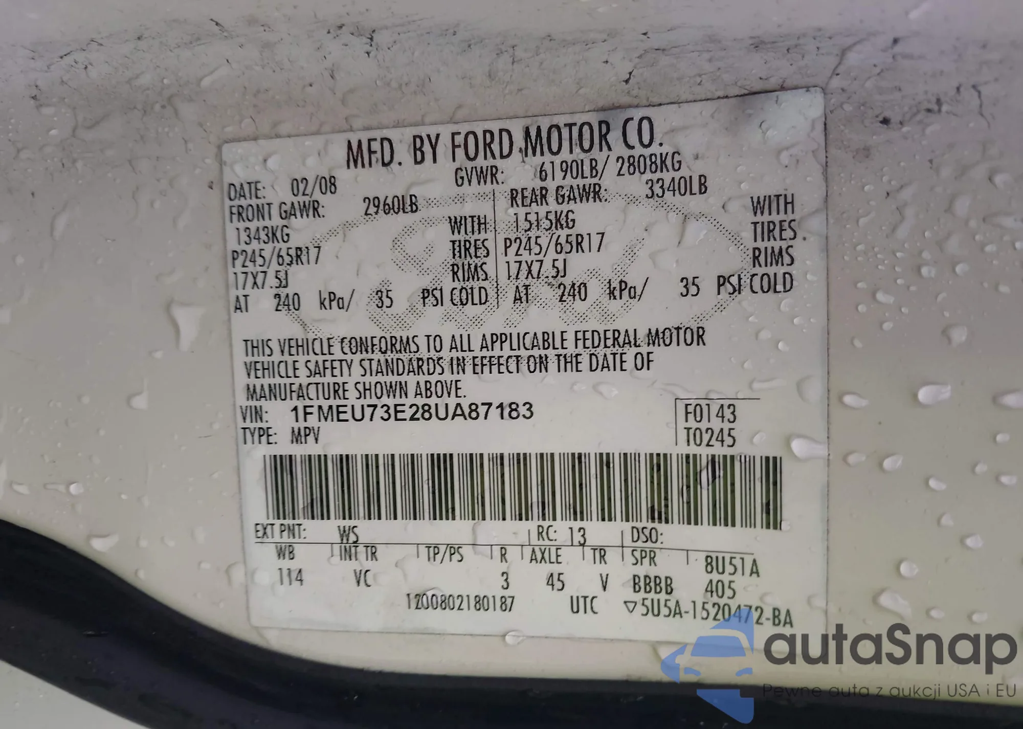 VIN: 1FMEU73E28UA87183