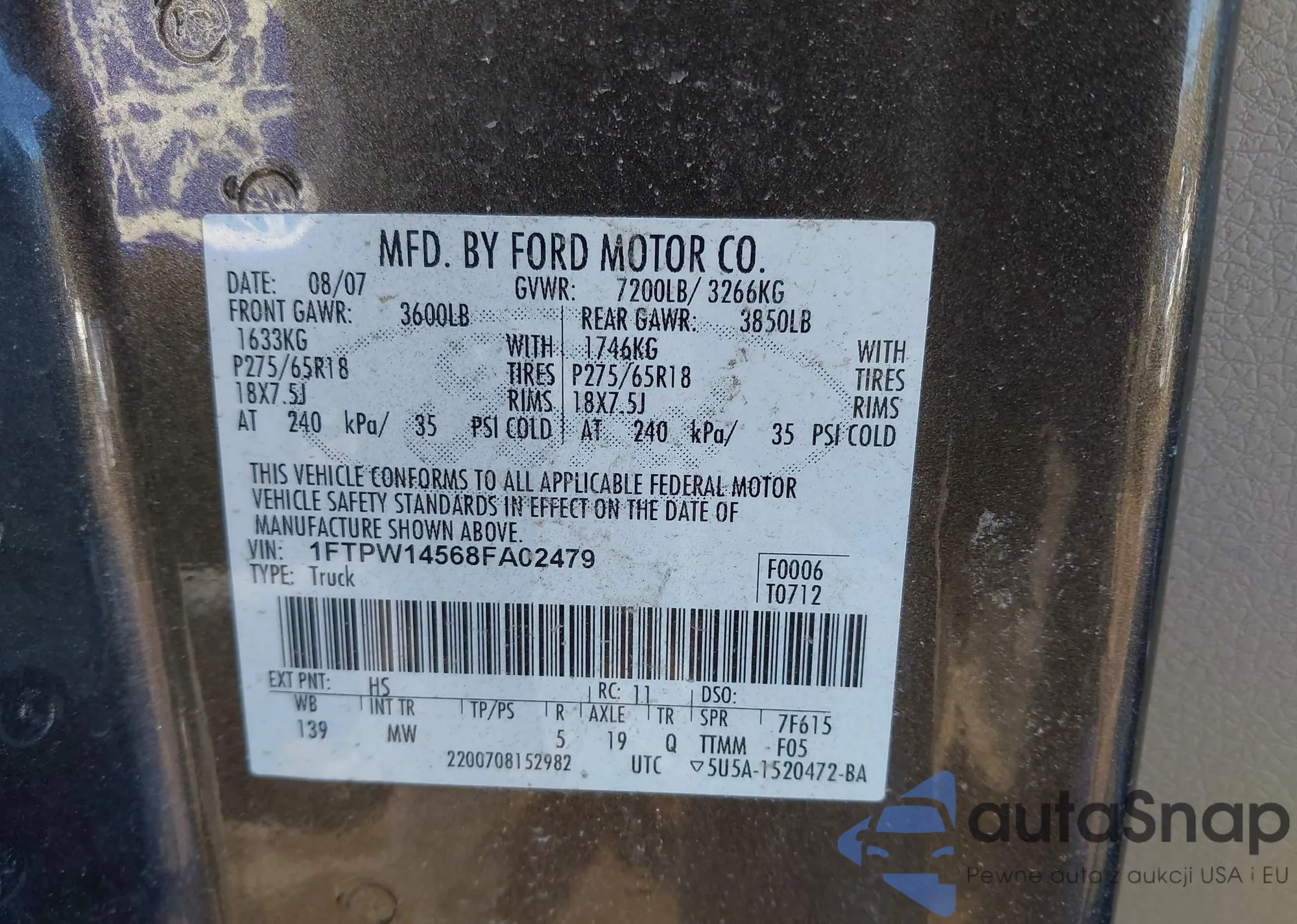 VIN: 1FTPW14568FA02479