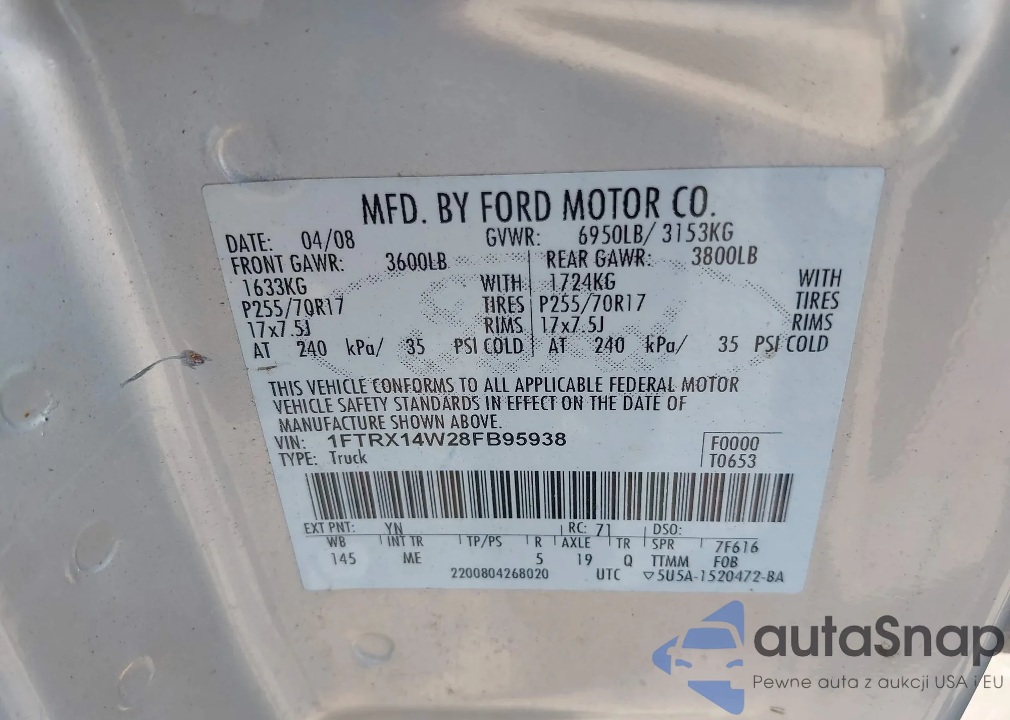 VIN: 1FTRX14W28FB95938