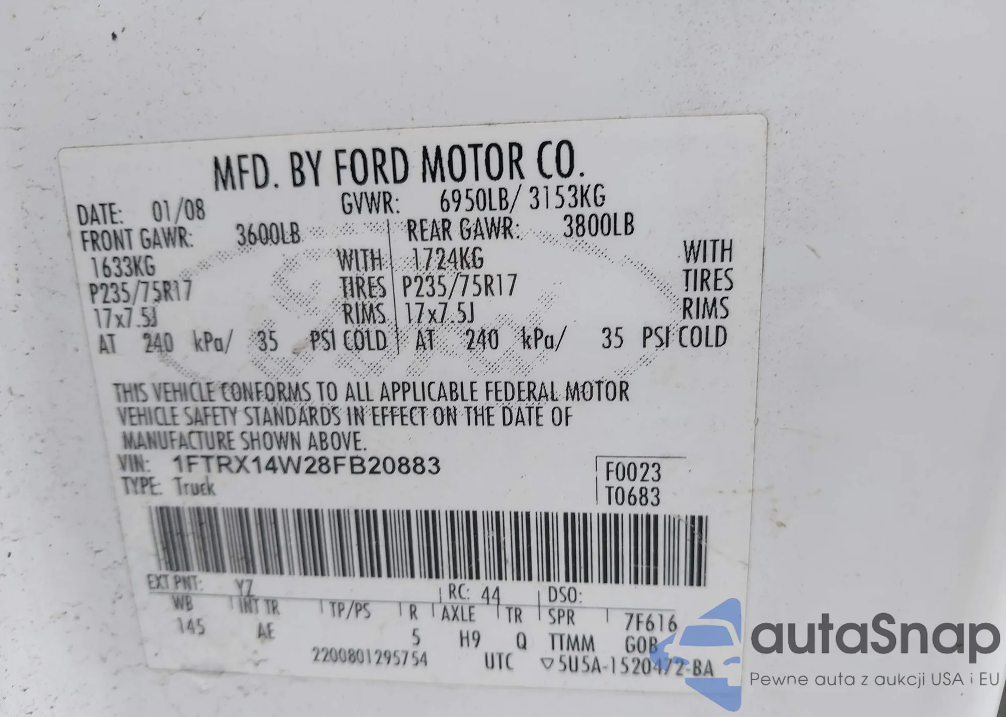 VIN: 1FTRX14W28FB20883