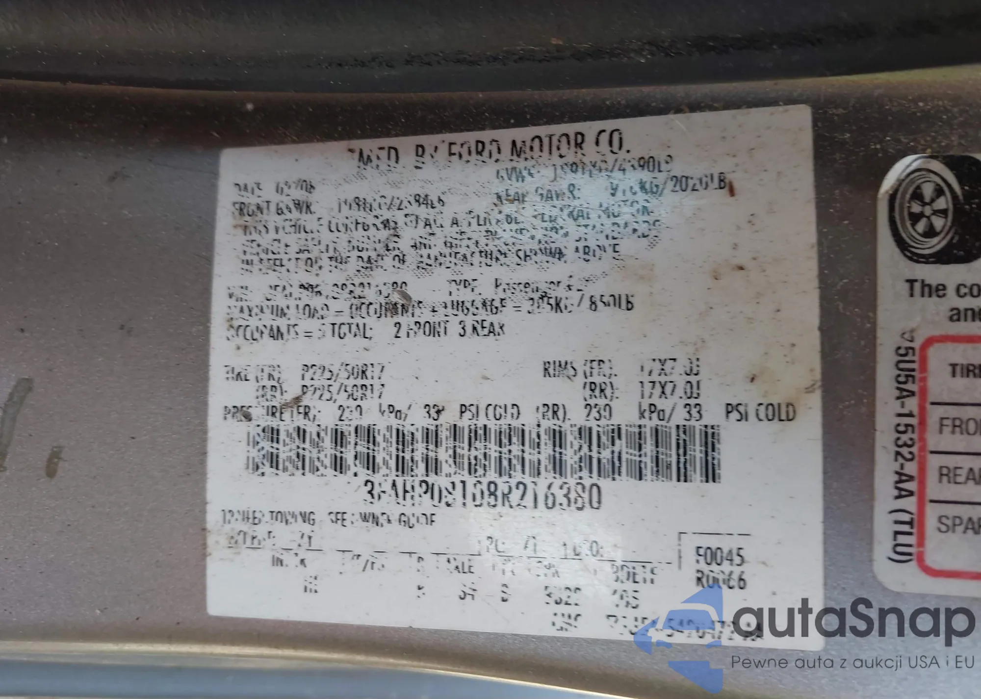 VIN: 3FAHP08108R216380