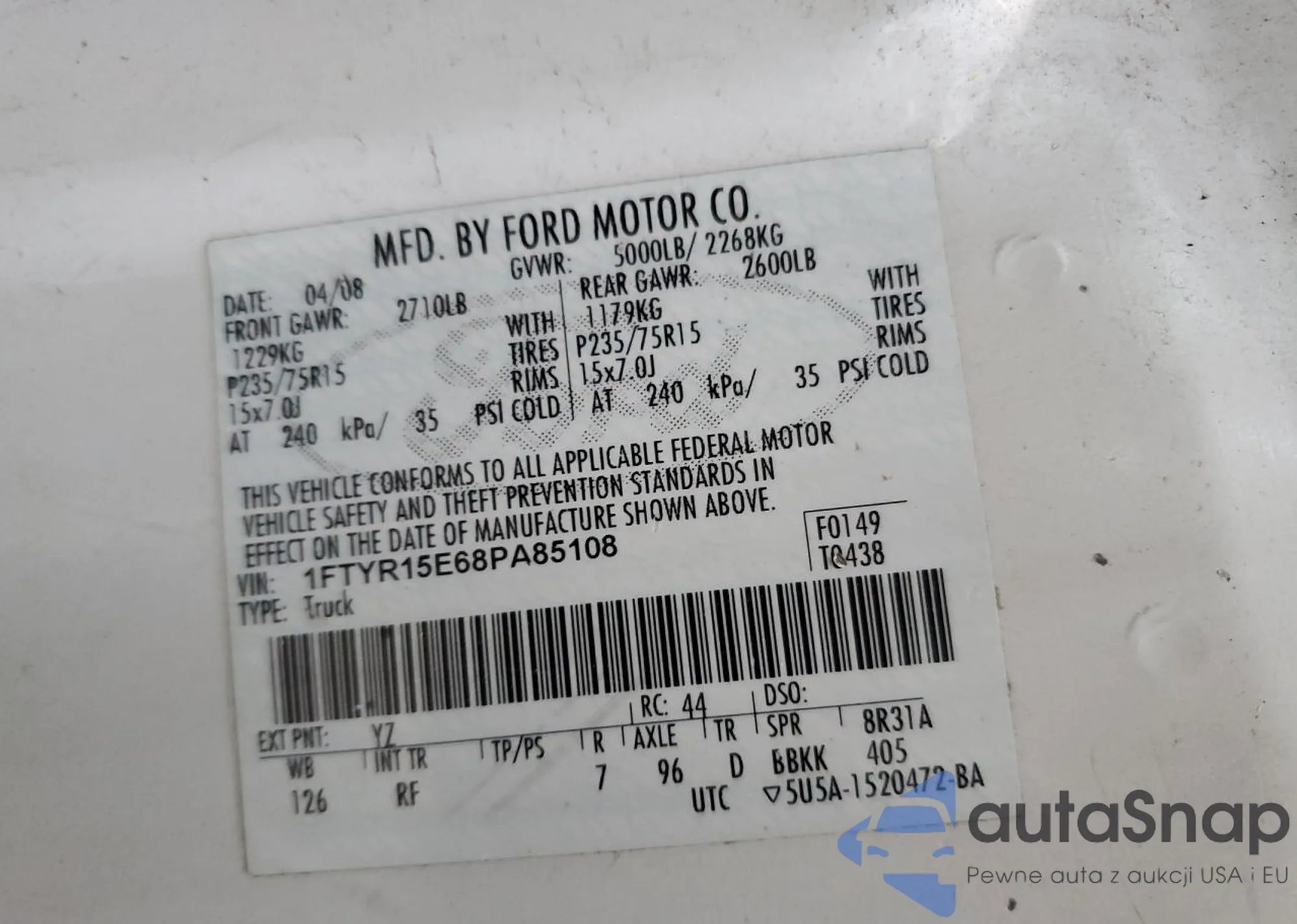 VIN: 1FTYR15E68PA85108