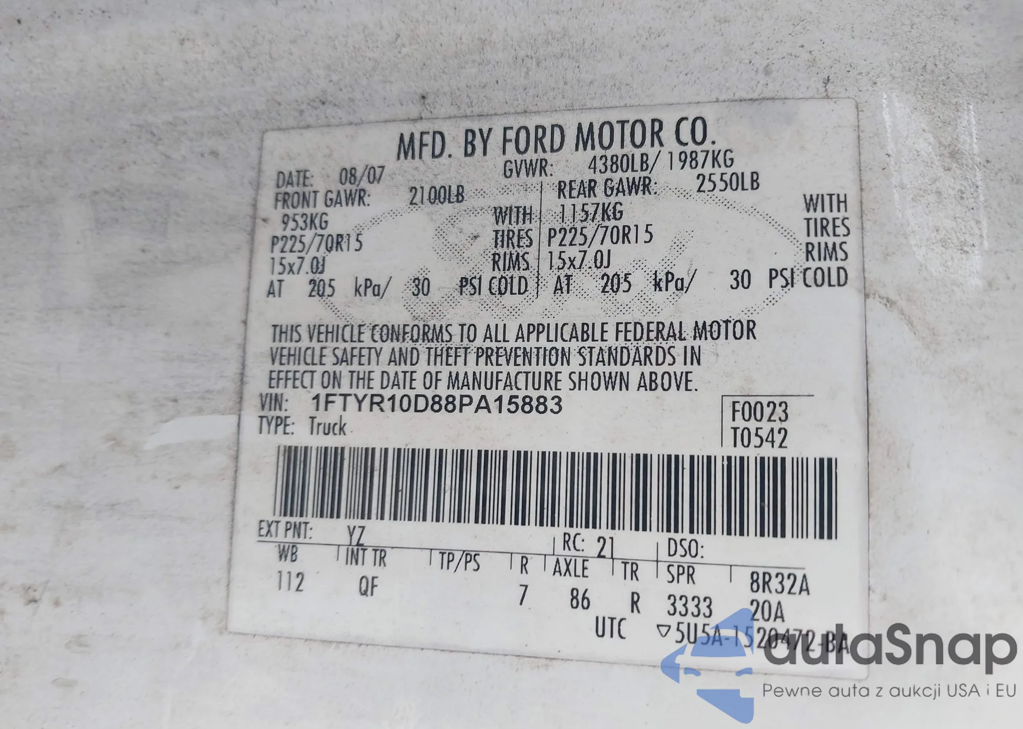 VIN: 1FTYR10D88PA15883