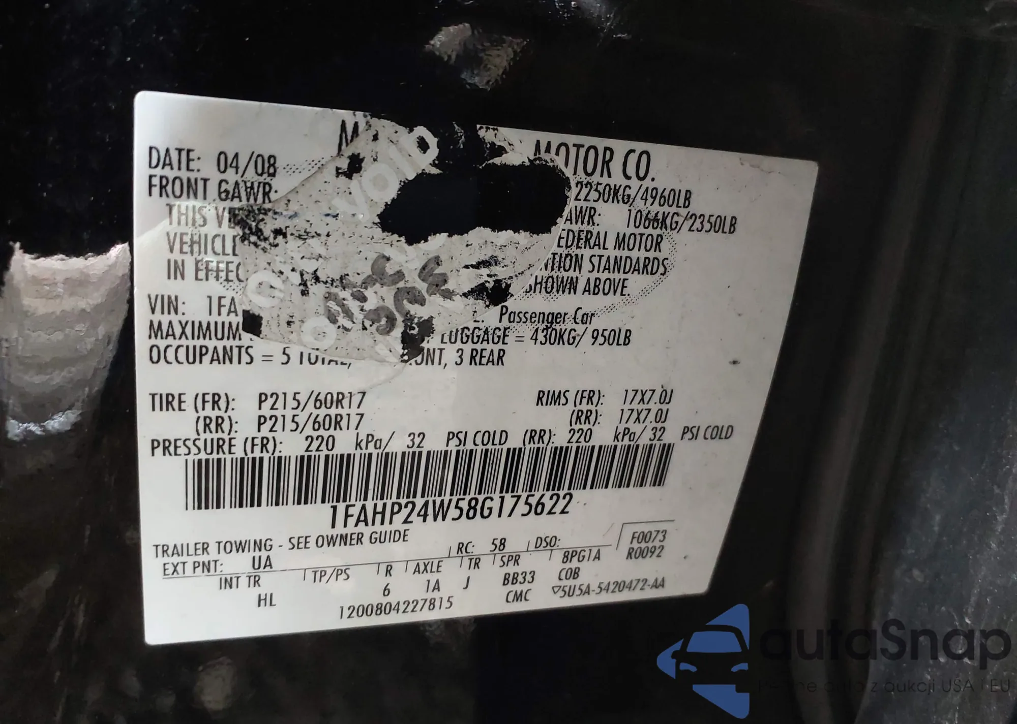 VIN: 1FAHP24W58G175622