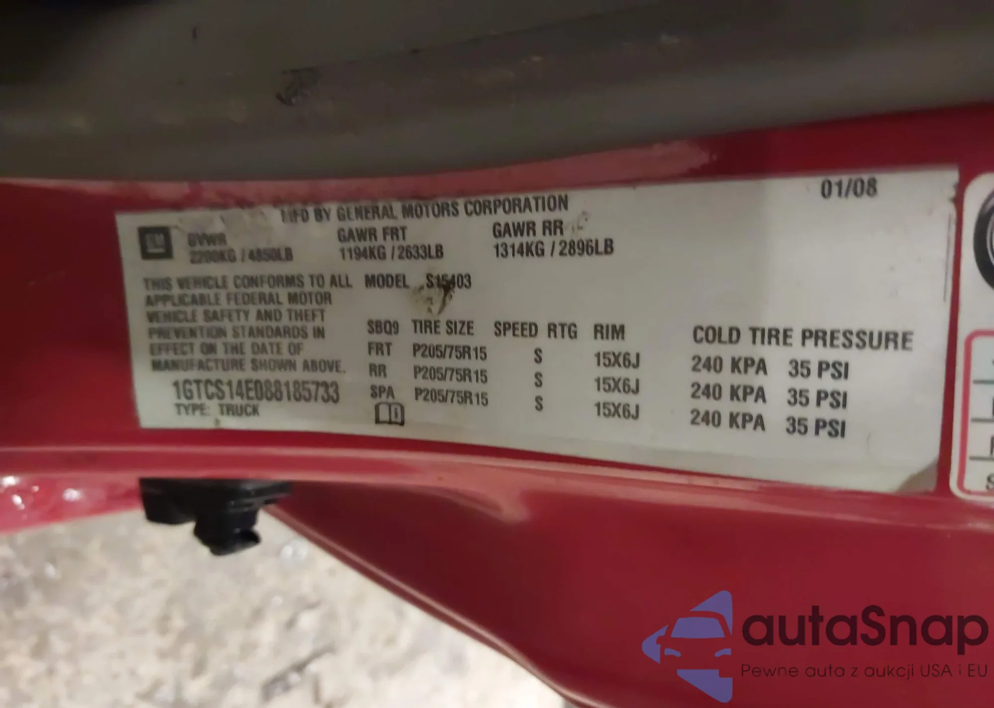 • VIN: 1GTCS14E088185733