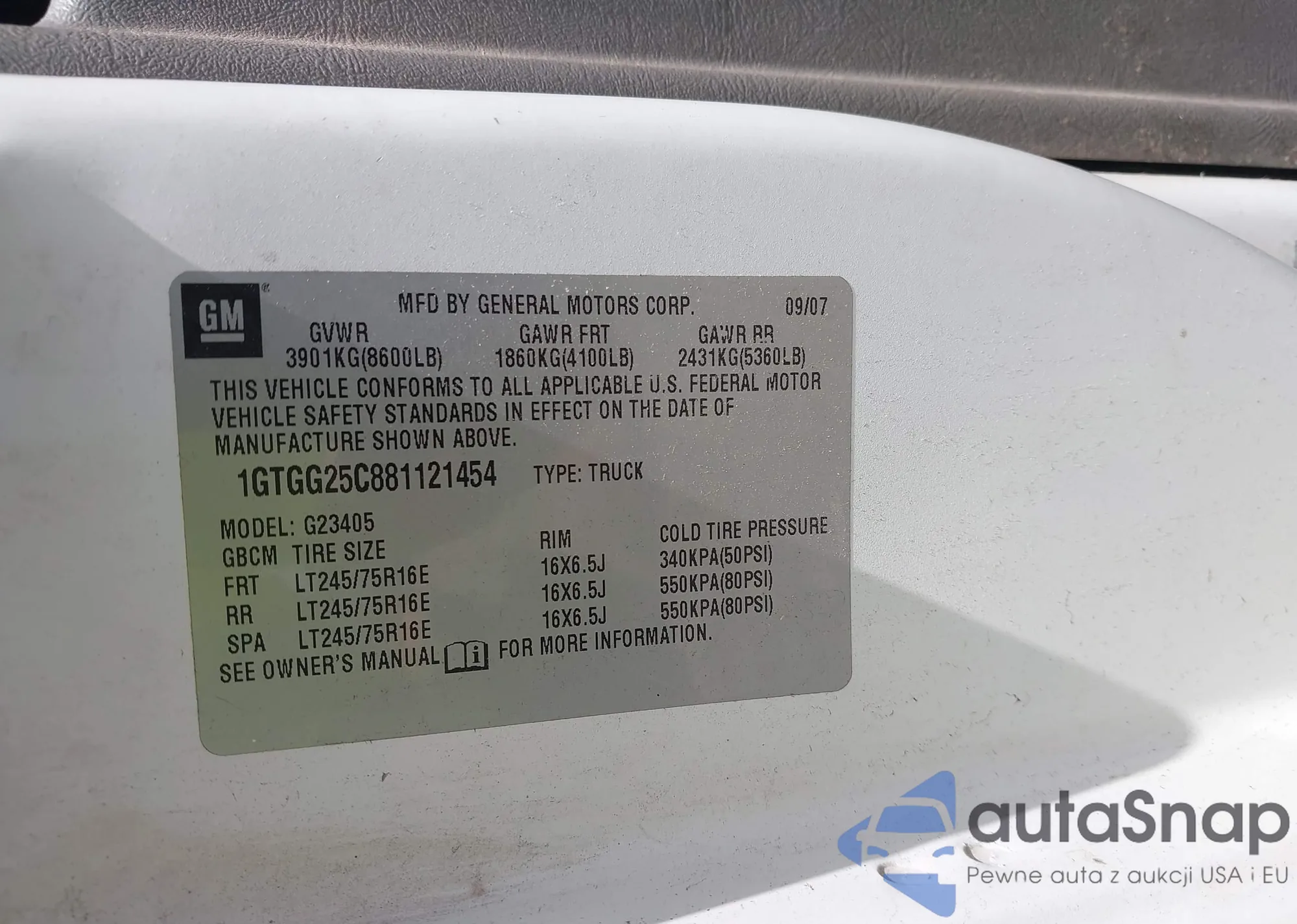 The car GMC Savana 2008 (VIN 1GTGG25C881121454) has documents that prevent registration. Export and registration may be difficult. Contact AutaSnap experts to find alternatives.