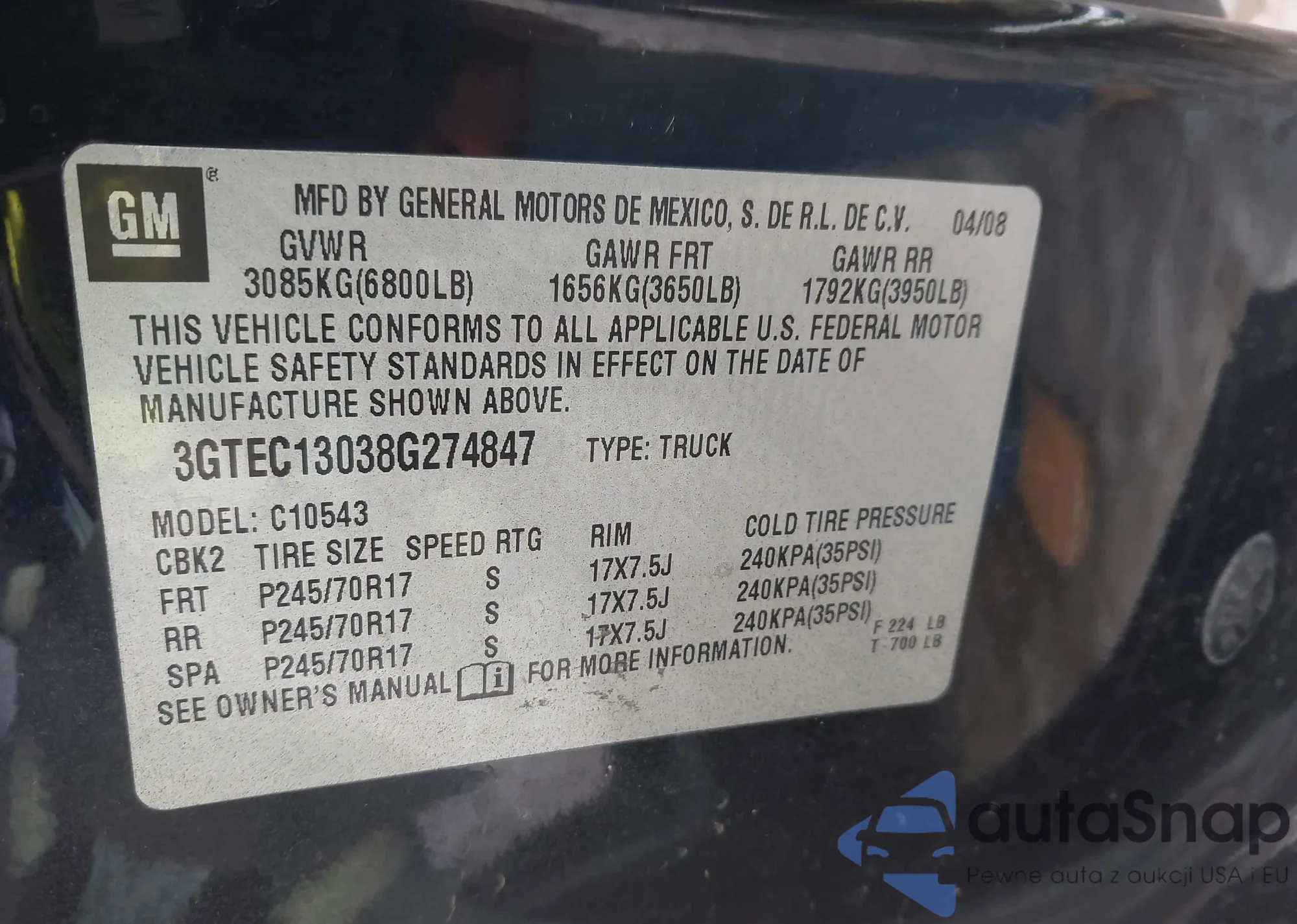VIN: 3GTEC13038G274847