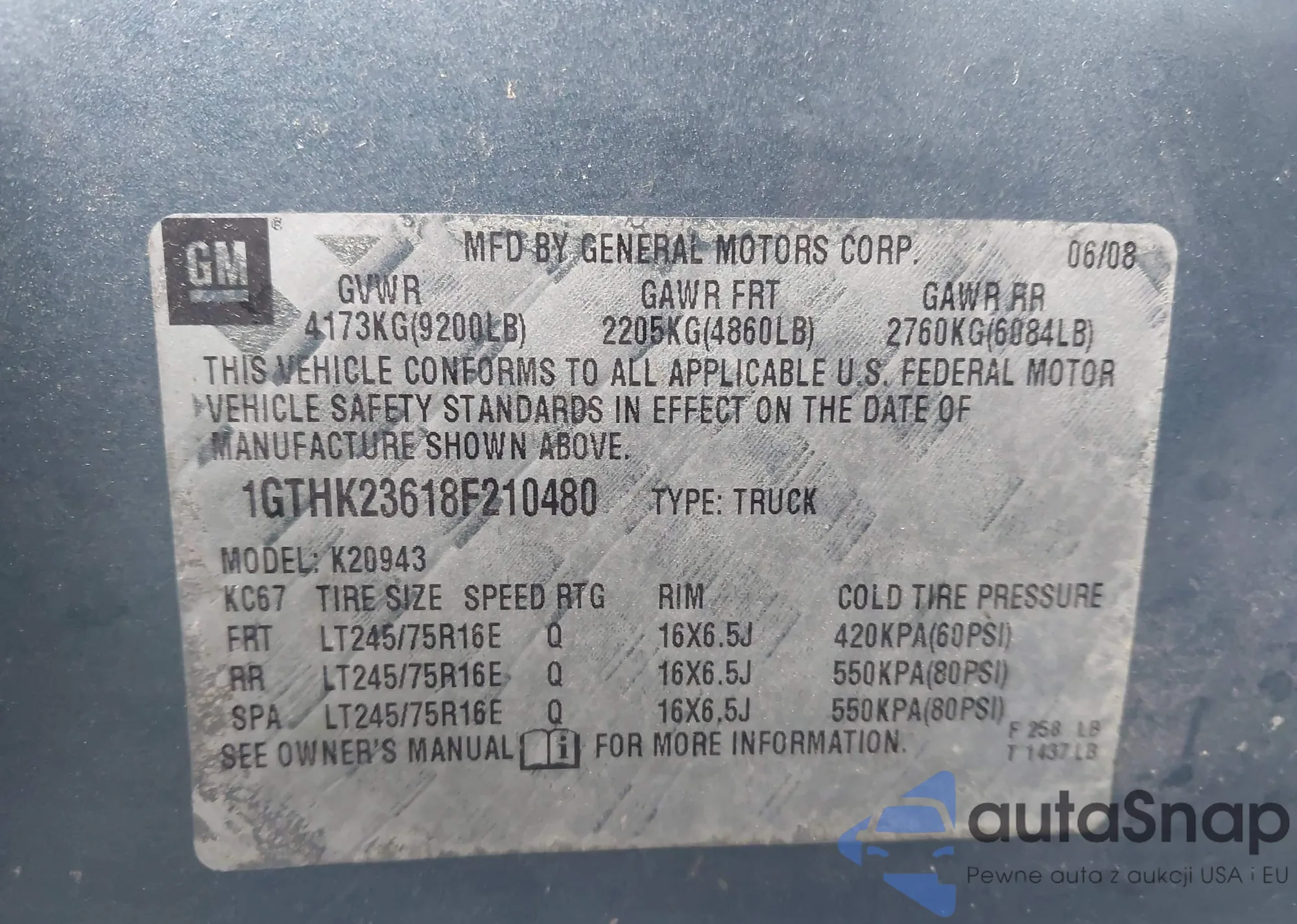 • VIN: 1GTHK23618F210480