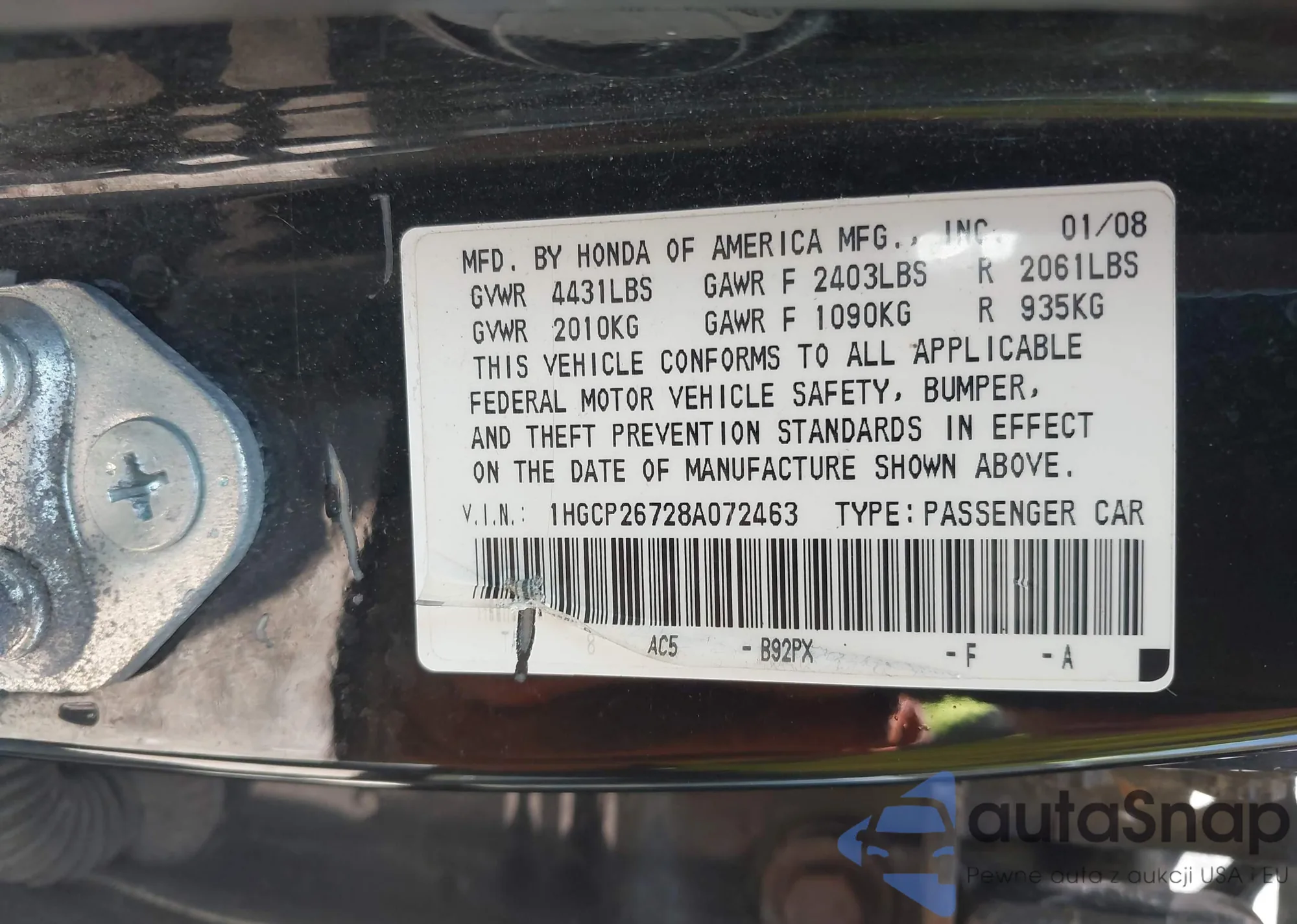 VIN: 1HGCP26728A072463