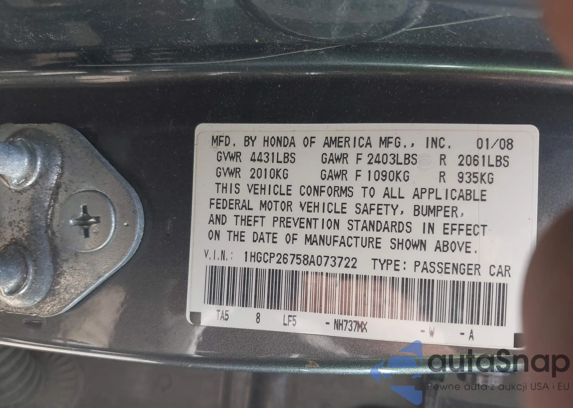 VIN: 1HGCP26758A073722