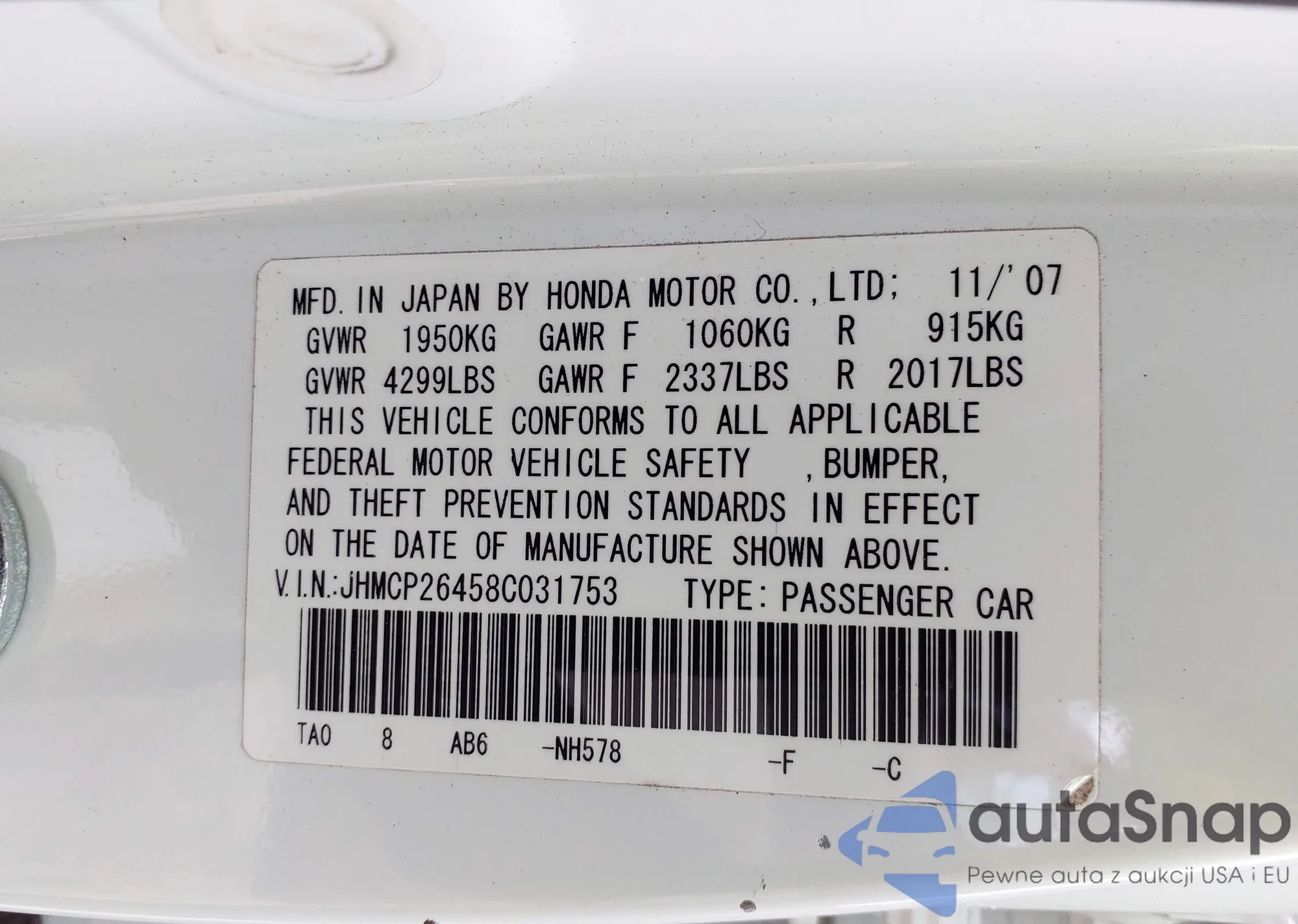 VIN: JHMCP26458C031753