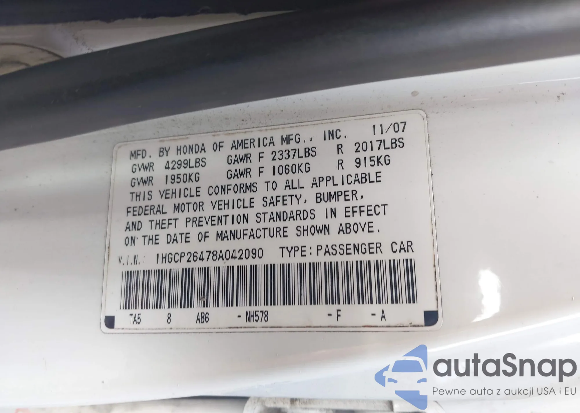 The car Honda Accord 2008 (VIN 1HGCP26478A042090) is sold by an unverified seller. We recommend checking the Carfax report and confirming registration possibilities before purchase.