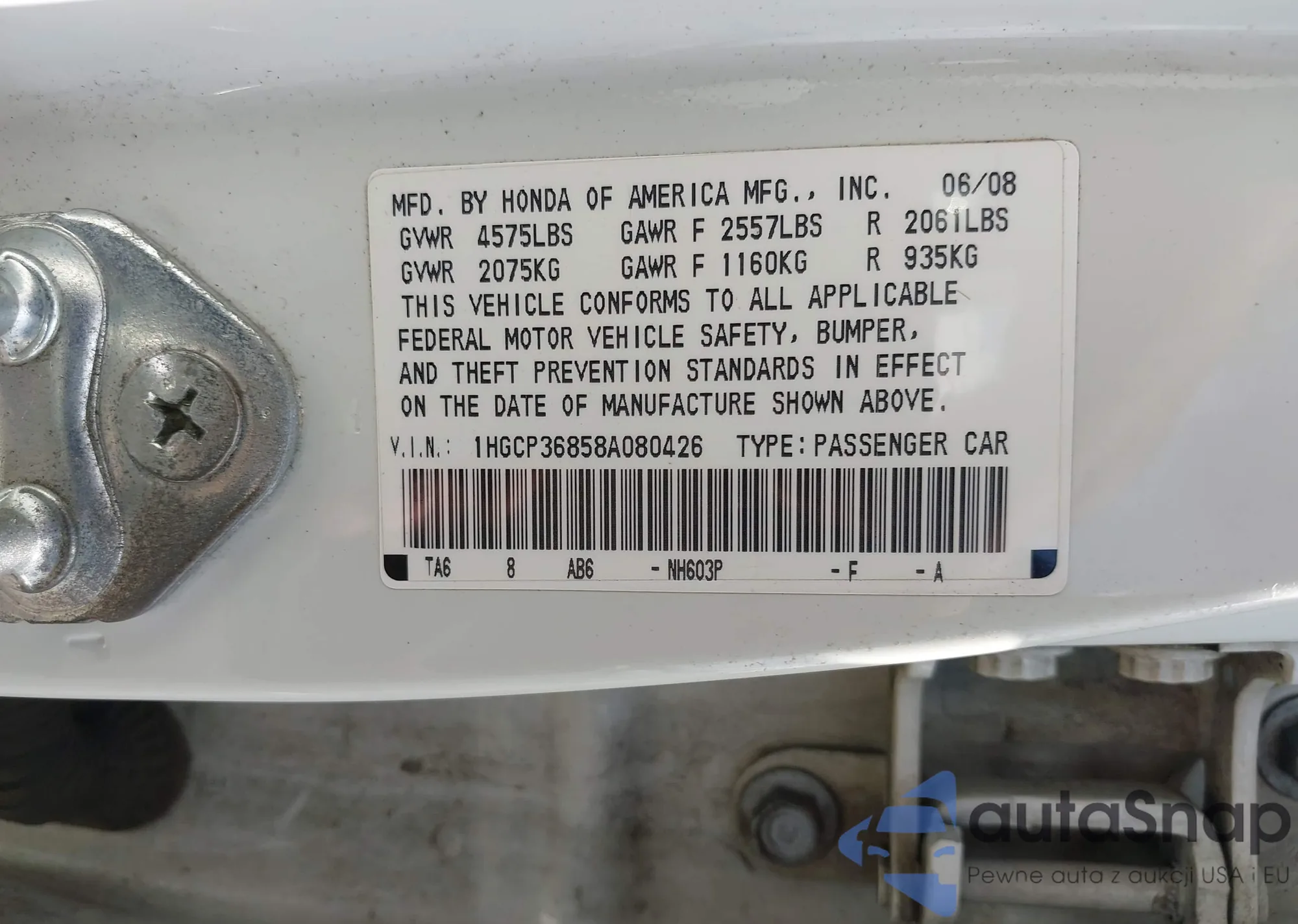 VIN: 1HGCP36858A080426